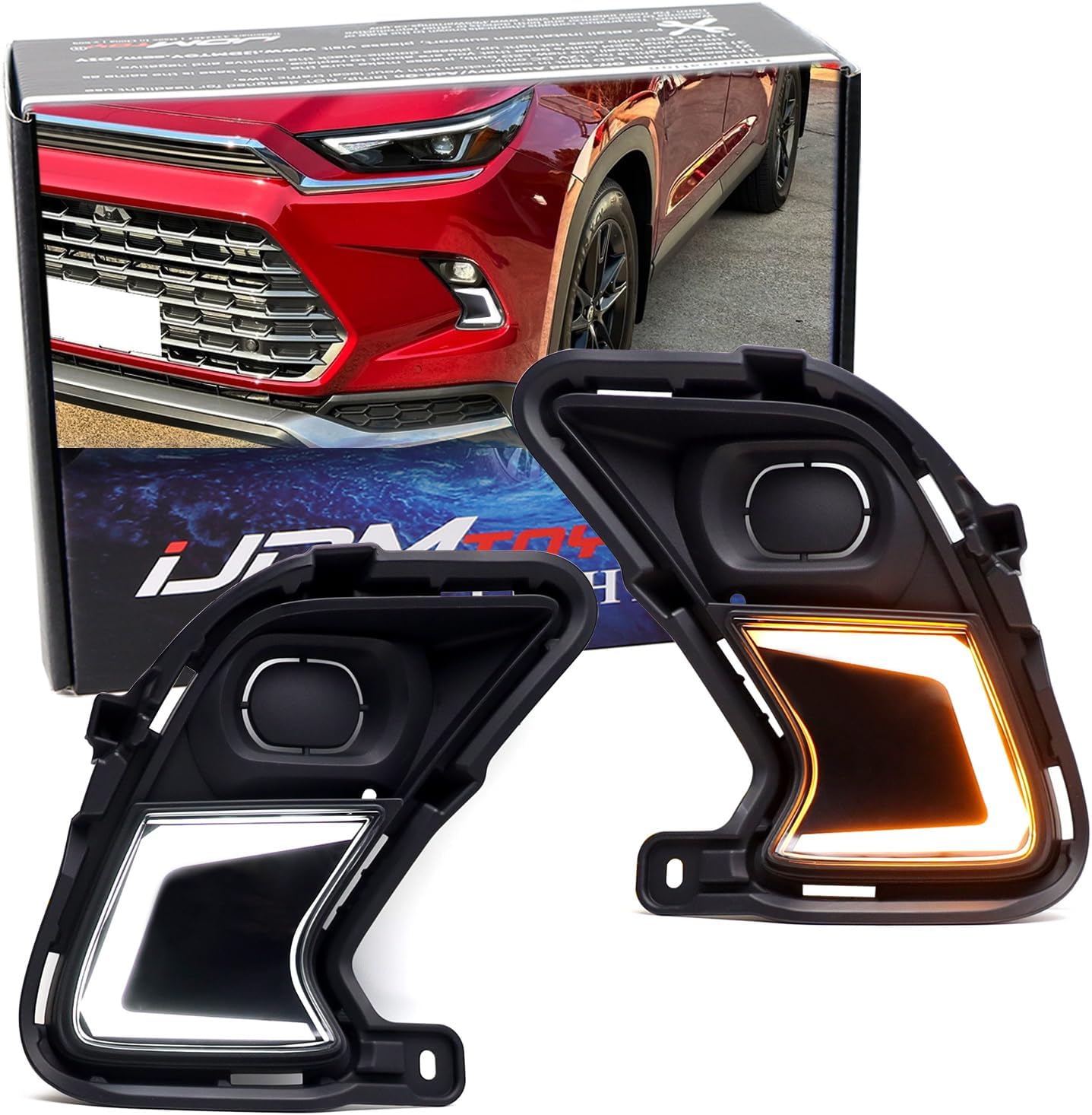 iJDMTOY Fog Lamp Bezel Replacement White/Amber Switchback LED Daytime Running Light Kit Compatible With Toyota 2024-up Grand Highlander