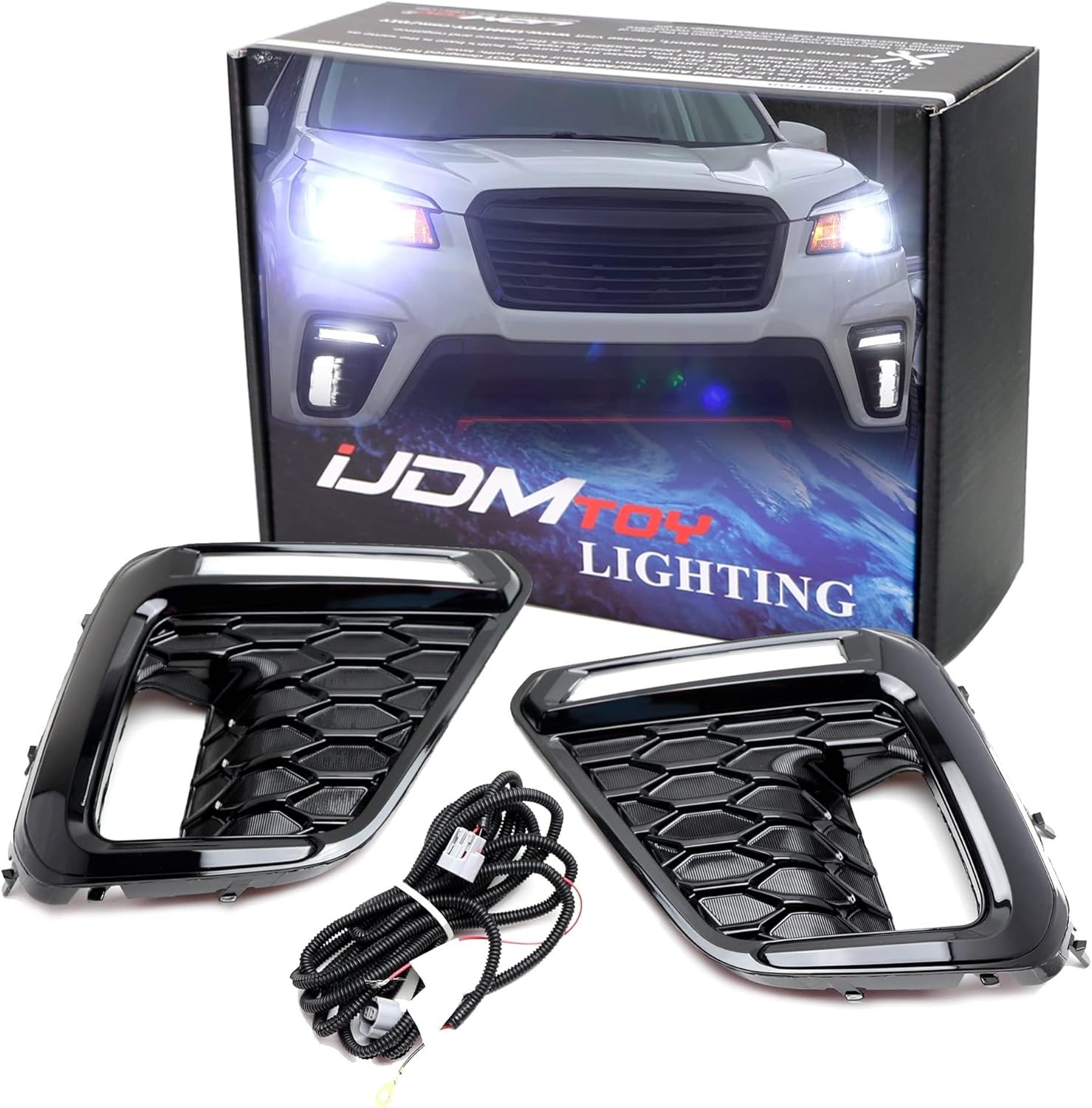 iJDMTOY JDM Style Piano Black Gloss Finish White/Amber Switchback LED DRL Fog Light Kit Compatible With Subaru 2019-2021 Forester Sport ONLY