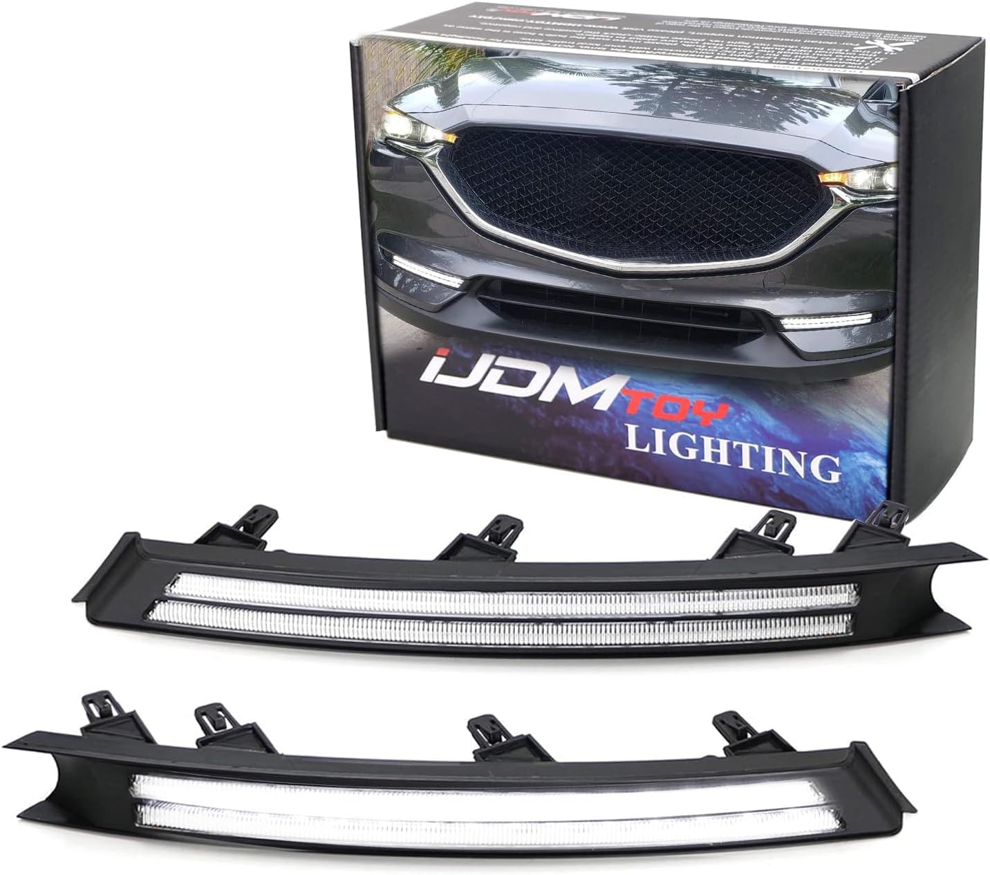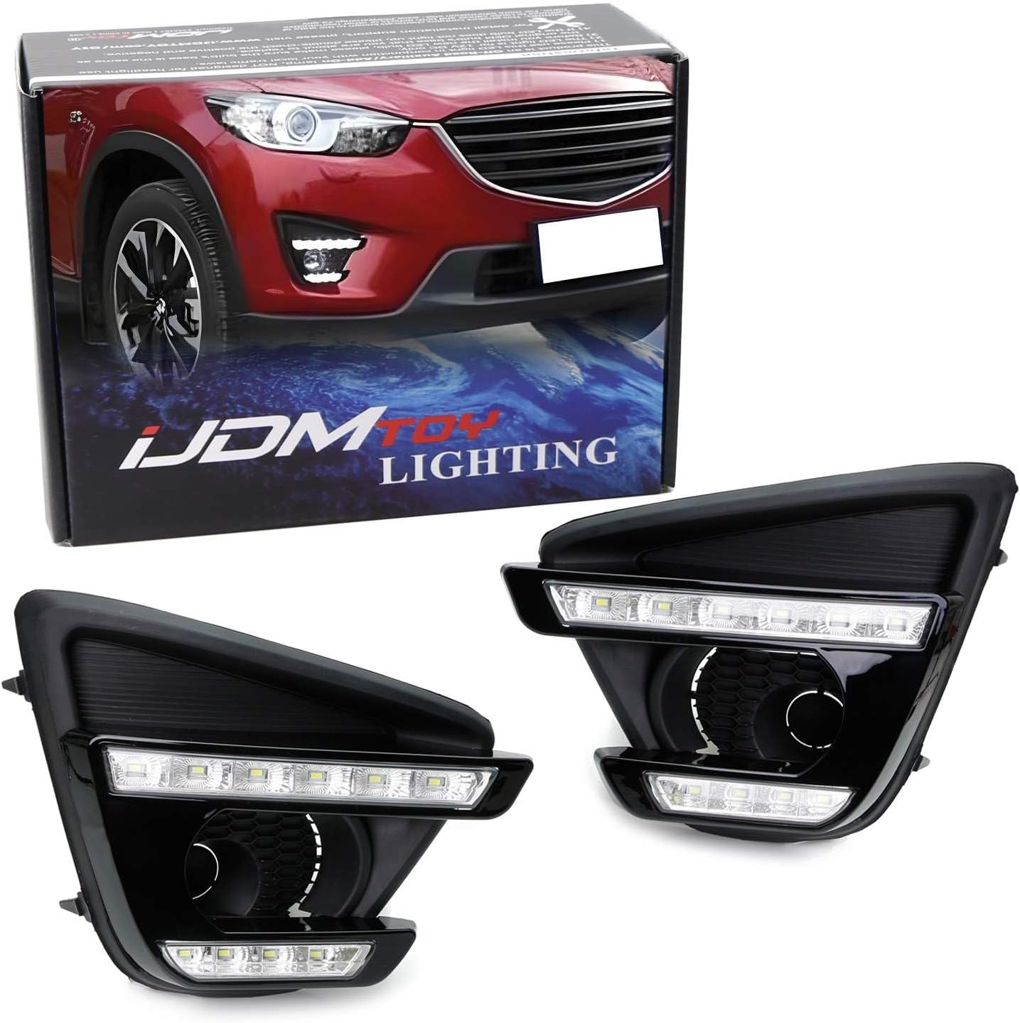 iJDMTOY Xenon White LED Daytime Running Light/Fog Lamps Compatible With 13-16 Mazda CX-5, Direct Double-Row Facelift Design Powered by 10W High Power LED Lights
