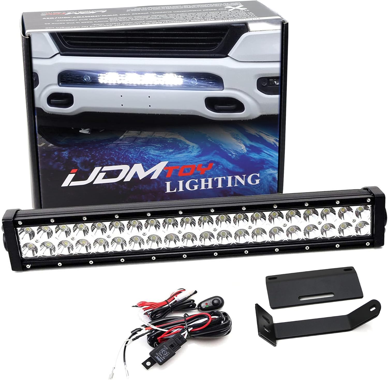 iJDMTOY Lower Grille Mount 20-Inch LED Light Bar Compatible with 2019-up Dodge RAM Limited, Includes (1) 120W High Power LED Lightbar, Lower Bumper Opening Mounting Brackets & On/Off Switch Wiring