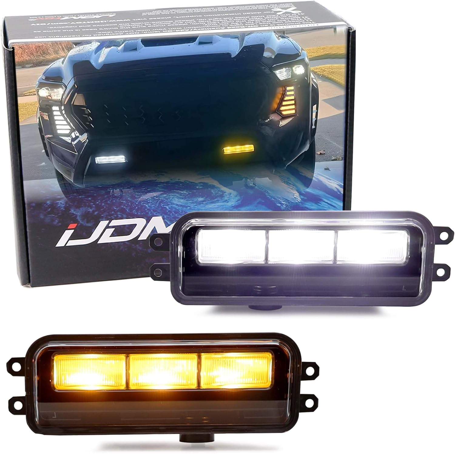 iJDMTOY Clear Lens OE-Spec Front Bumper White/Amber Dual-Color LED DRL/Fog Light w/Amber LED Driving or Turn Signal Light Feature, Compatible With Toyota 22-up Tundra/Sequoia, 24-up Tacoma, 4Runner