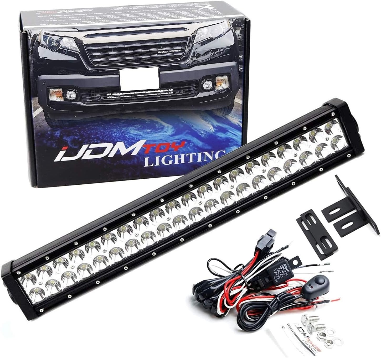 iJDMTOY Behind Lower Grille 20-Inch LED Light Bar Kit Compatible with 2017-up Honda Ridgeline, Includes 120W High Power LED Lightbar, Lower Bumper Mesh Mounting Brackets & On/Off Switch Wiring Kit
