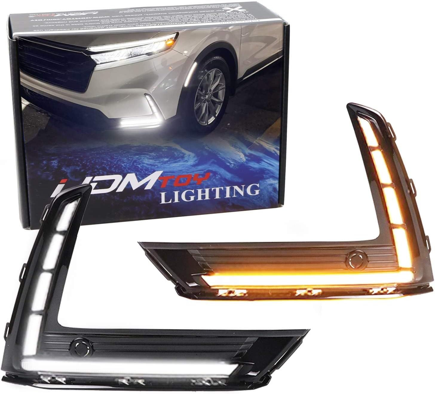 iJDMTOY Switchback LED Daytime Running Light Assy Compatible with 2017-2020 Nissan Rogue, Foglamp Bezel Replacement White/Amber Optic Tube LED w/Turn Signal Function