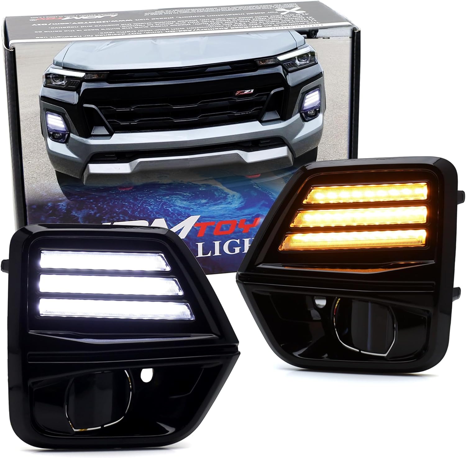 iJDMTOY Gloss Black Finish Fog Bezel Replacement White/Amber Sequential Blink Switchback LED Daytime Running Light Kit Compatible With Chevrolet 2023-up Colorado