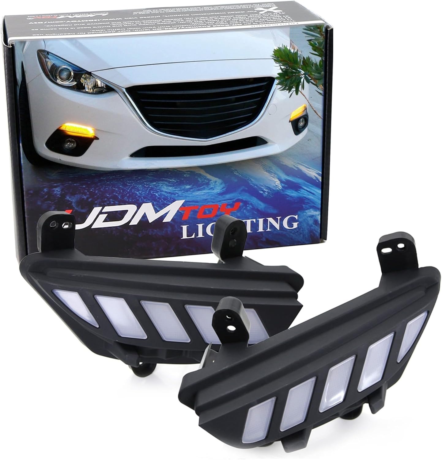 iJDMTOY Switchback LED Daytime Running Lights Assembly Compatible with 2014-2016 Mazda3 Axela, OEM Fit High Power Assy Powered by (6) Xenon White LED as DRL & (16) Amber Yellow LED as Turn Signals