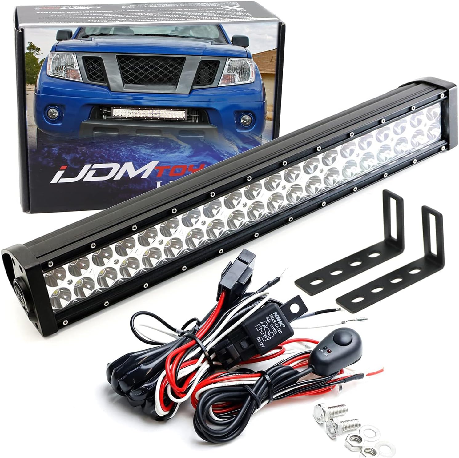 iJDMTOY Lower Grille 20-Inch LED Light Bar Kit Compatible with 2004-18 Nissan Frontier, Includes (1) 120W LED Lightbar, Lower Bumper Opening Mounting Brackets & On/Off Switch Wiring Kit
