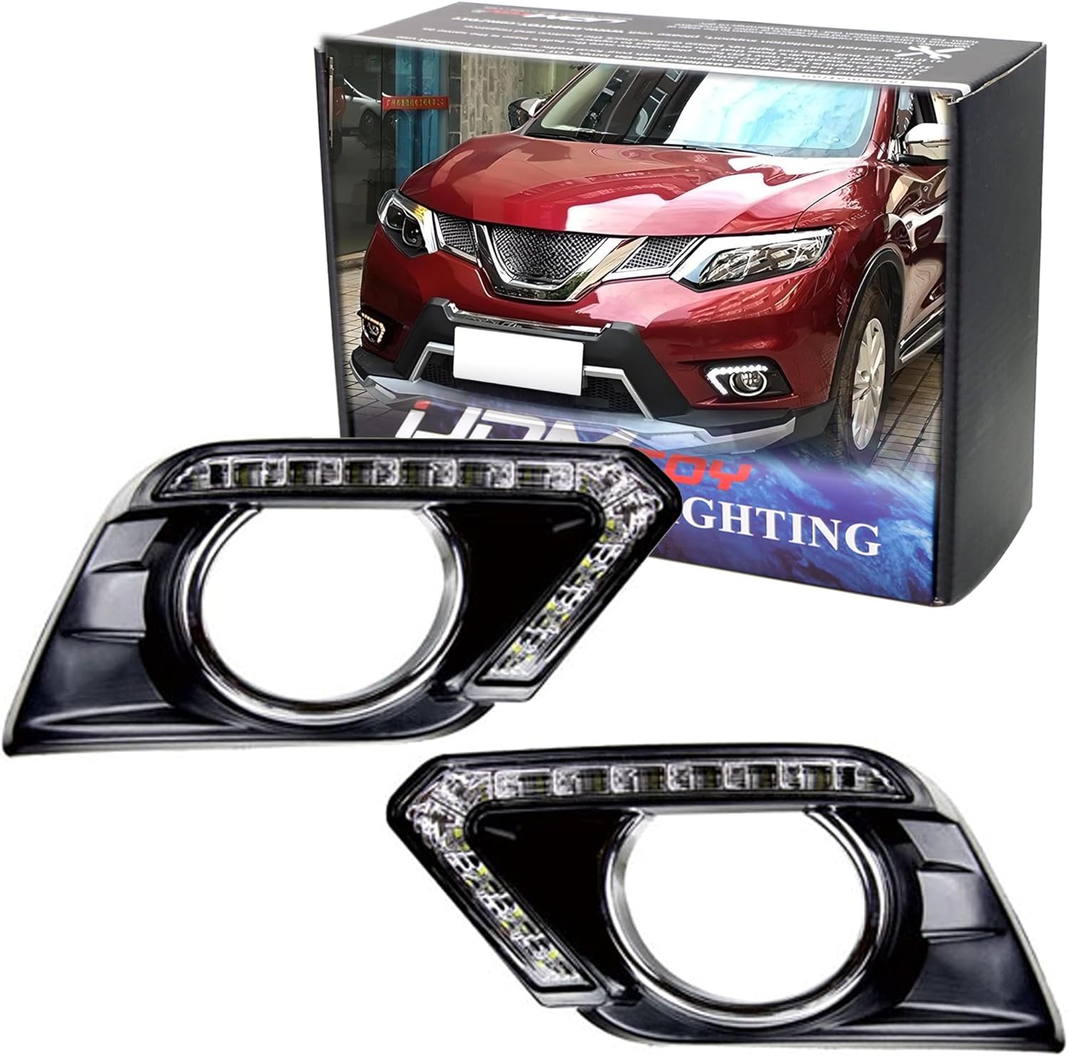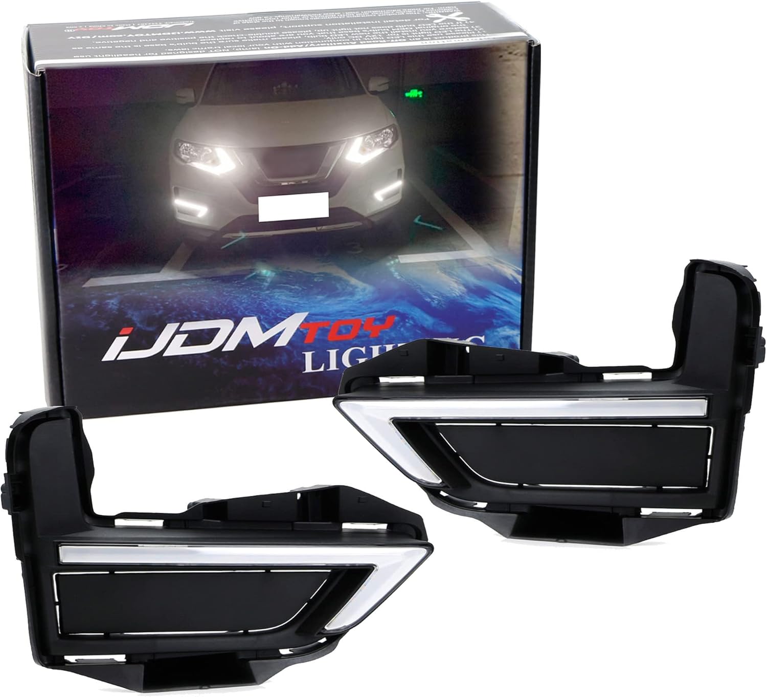 iJDMTOY Switchback LED Daytime Running Lights Assembly Compatible with 2014-2016 Nissan Rogue (X-Trail), OEM Fit High Power Assy, by (12) White LED as DRL & (12) Amber LED as Turn Signal Lights