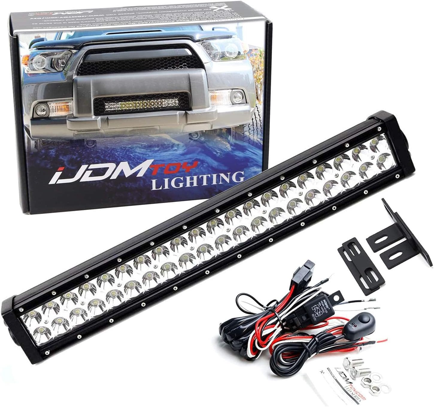 iJDMTOY Behind Lower Grille 20-Inch LED Light Bar Kit Compatible with 2010-2013 Toyota 4Runner, Includes (1) 120W LED Lightbar, Lower Bumper Mesh Mounting Brackets & On/Off Switch Wiring Kit