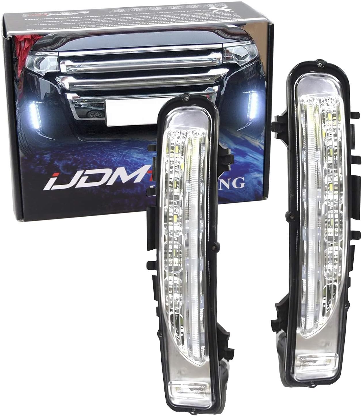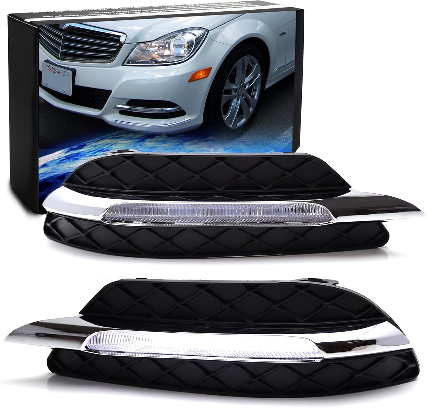 iJDMTOY Xenon White LED Daytime Running Lights w/Bezels Compatible With 2011-2014 Mercedes W204 C-Class C250 C300 C350 w/Standard Bumper, OEM Style DRL Powered by 4 Pieces High Power LED Lights