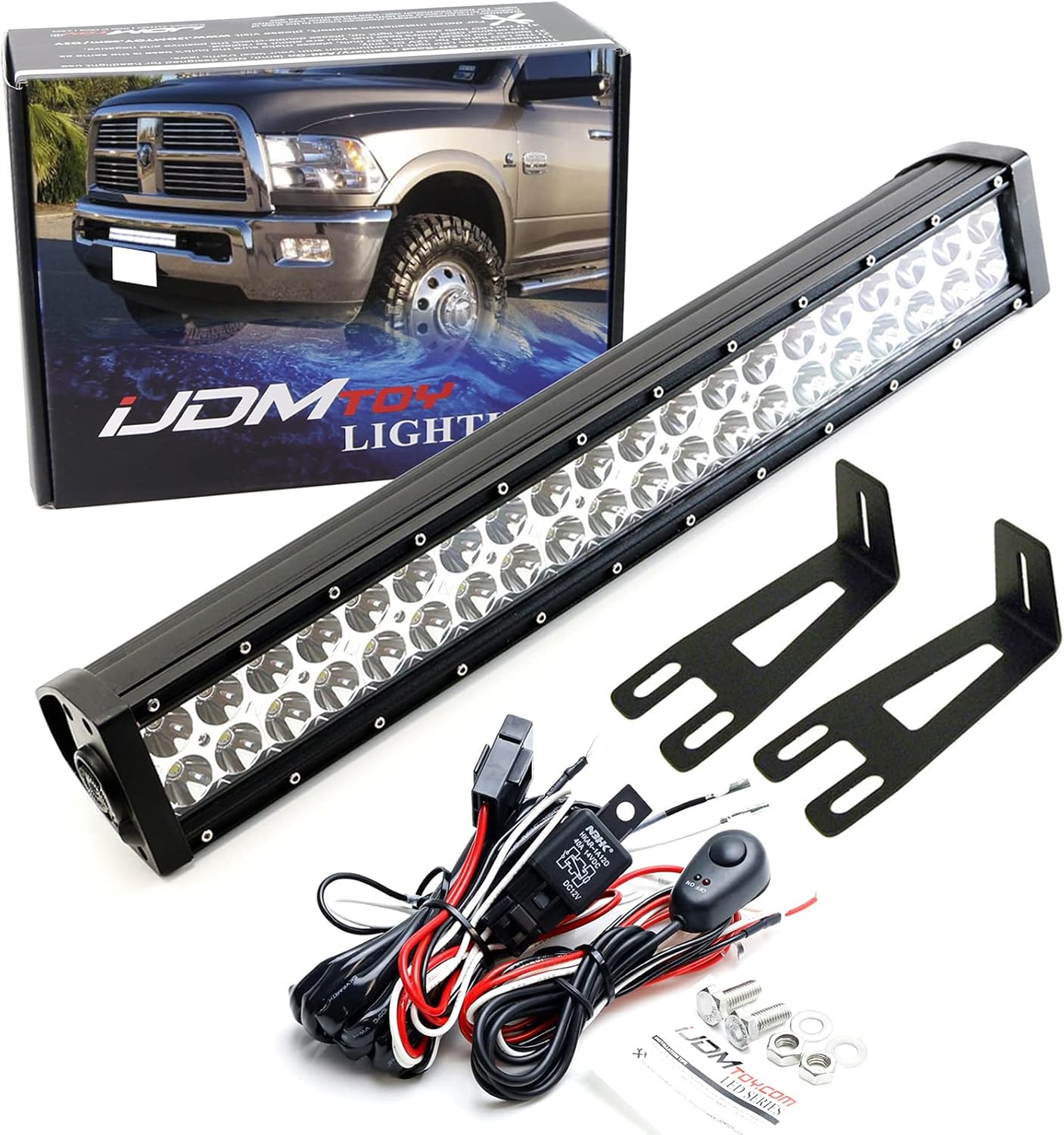 iJDMTOY Lower Grille 20-Inch LED Light Bar Compatible with 2009-18 Dodge RAM 2500 3500 HD, Includes (1) 120W High Power LED Lightbar, Lower Bumper Opening Mounting Brackets & On/Off Switch Wiring Kit