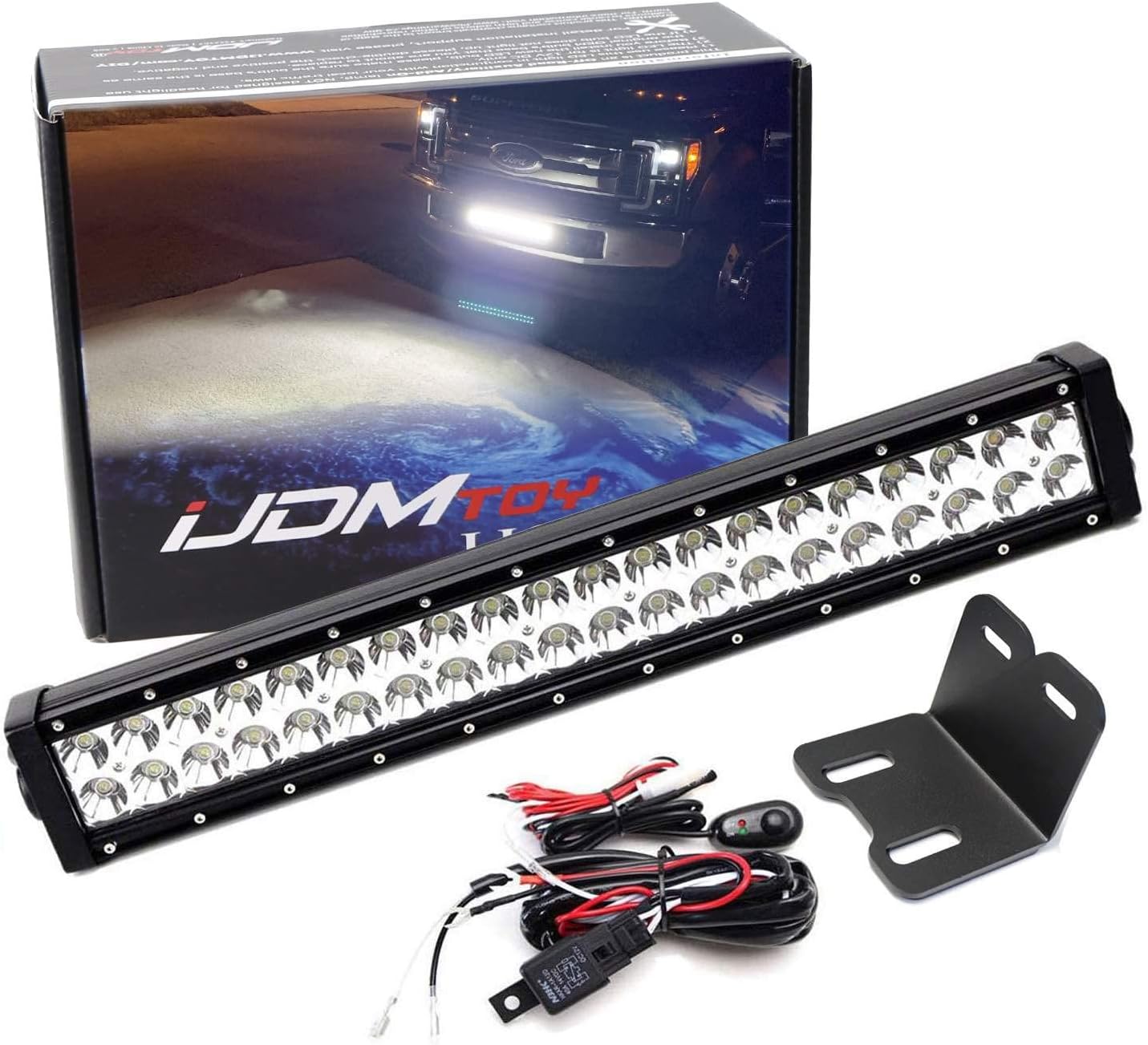 iJDMTOY Lower Grille Mount 20-Inch LED Light Bar Kit Compatible w/Ford 2017-2019 Pre-LCI F250 F350: 120W High Power LED Lightbar, Lower Bumper Area Mounting Brackets & On/Off Switch Relay Wire