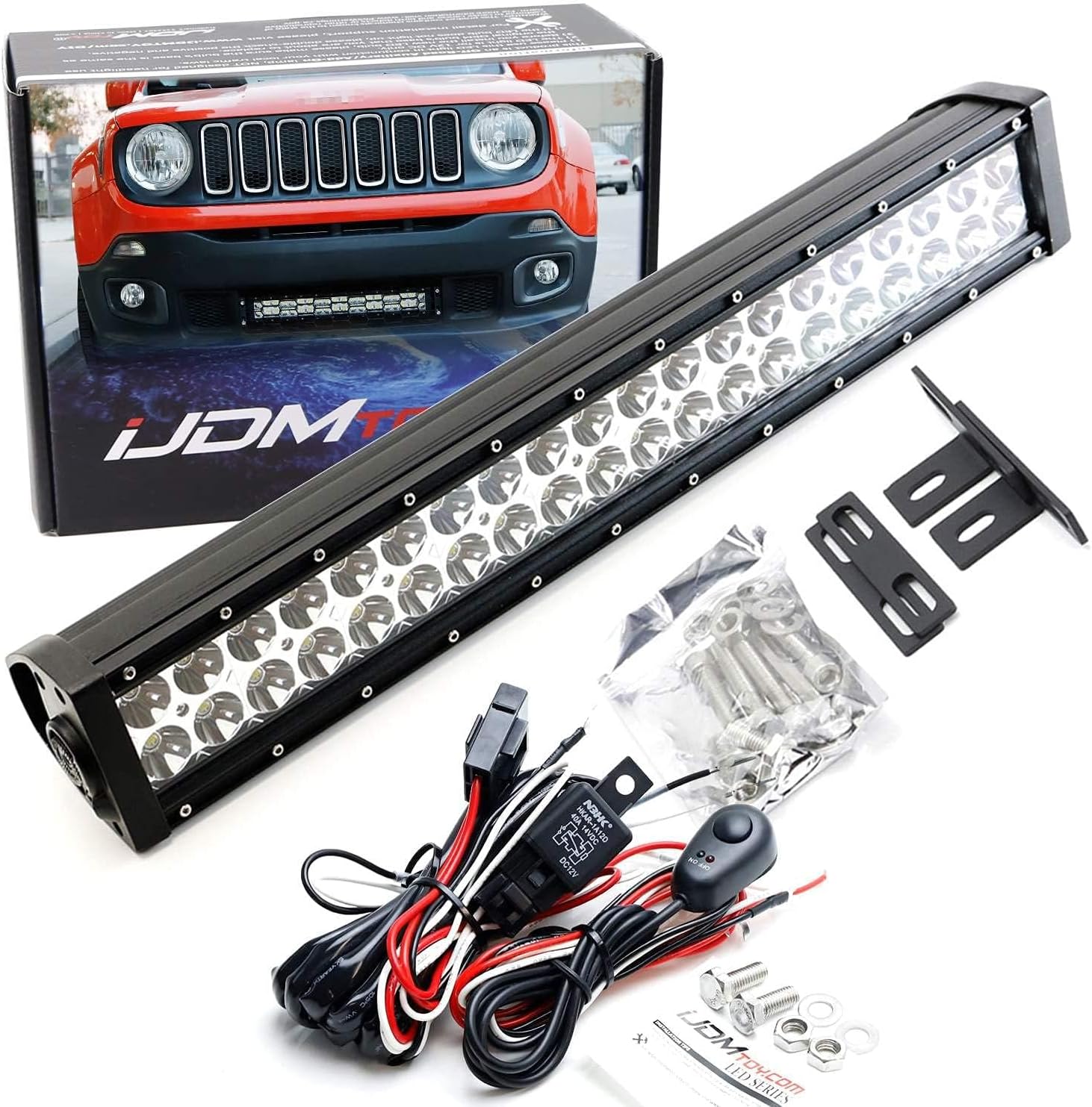 iJDMTOY Behind Lower Grille 20-Inch LED Light Bar Kit Compatible with Jeep 2015-up Renegade, Includes (1) 120W High Power LED Lightbar, Lower Bumper Grill Mounting Brackets & On/Off Switch Wiring Kit