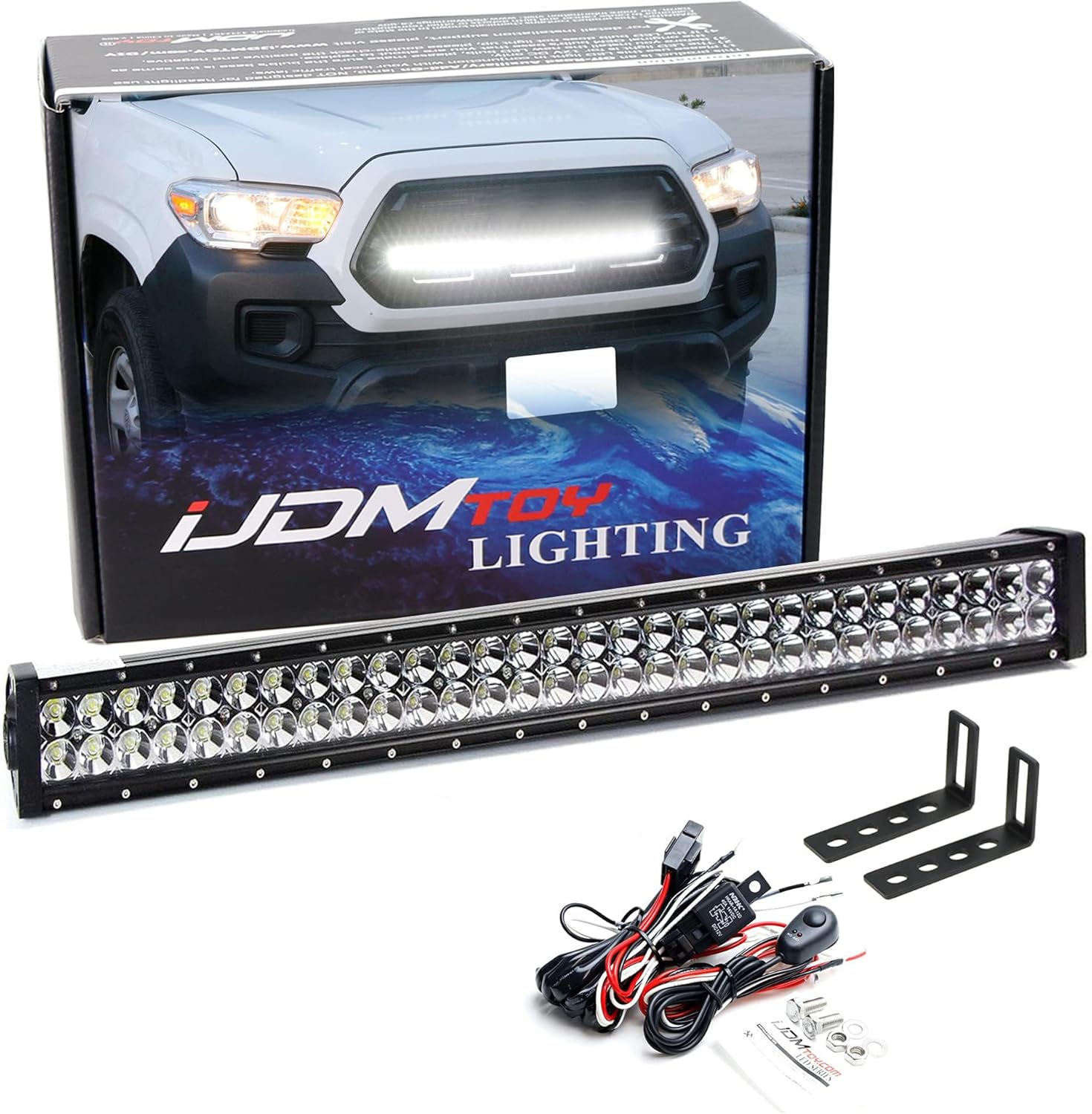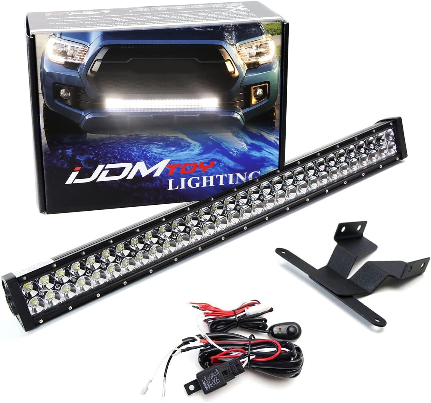 iJDMTOY Lower Grille 30-Inch LED Light Bar Kit Compatible with 2016-23 Toyota Tacoma, Includes (1) 180W High Power LED Lightbar, Lower Bumper Opening Mounting Brackets & On/Off Switch Wiring Kit