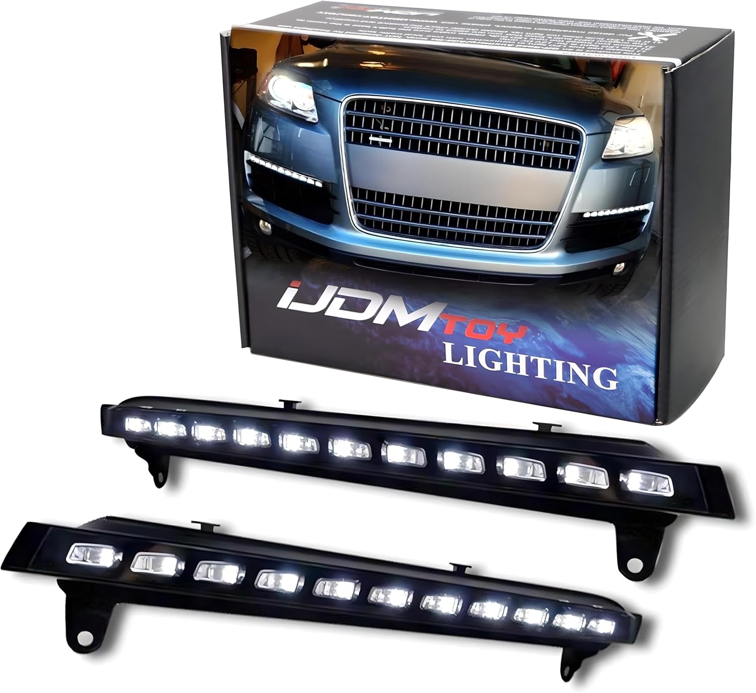 iJDMTOY Xenon White LED Daytime Running Lights Compatible With 2007-2009 Audi Q7 w/Amber LED Turn Signals, OEM Fit LED DRL Assy Powered by (11) White LED as DRL & (11) Amber LED as Turn Signals