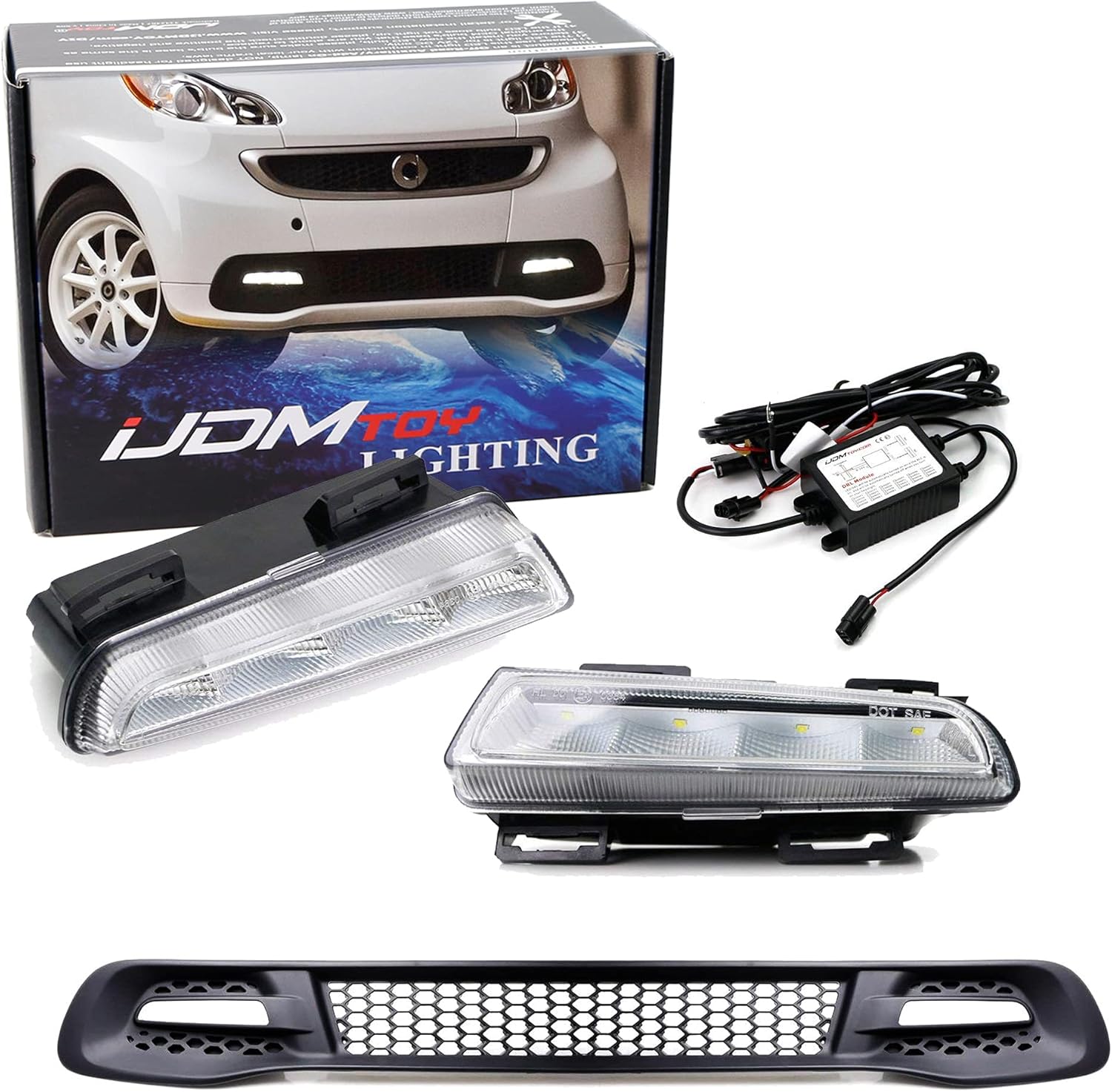 iJDMTOY White LED Daytime Running Lamps Compatible With 2013-2015 LCI Smart Fortwo (W451), Includes Exact Fit Factory Style High Power Xenon White LED DRLs, Module Box & Plastic Grille Insert Cover