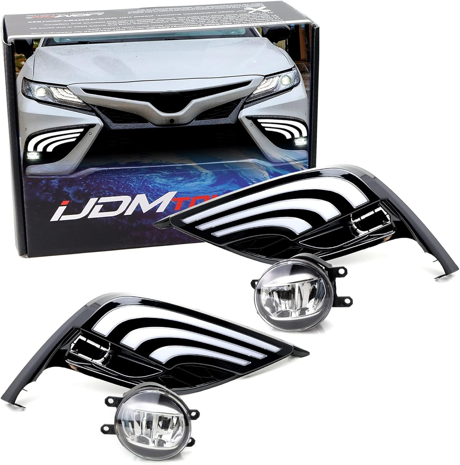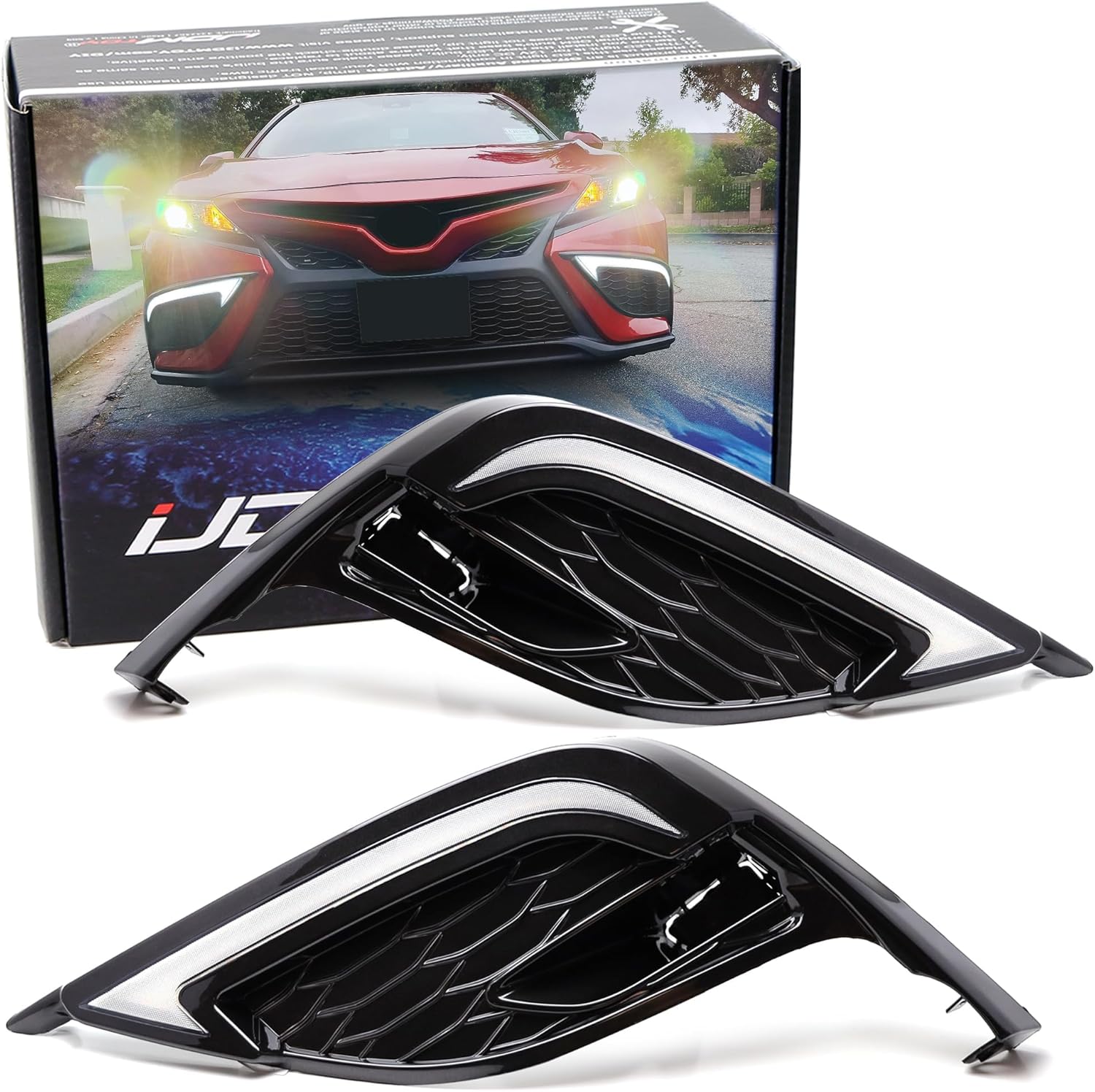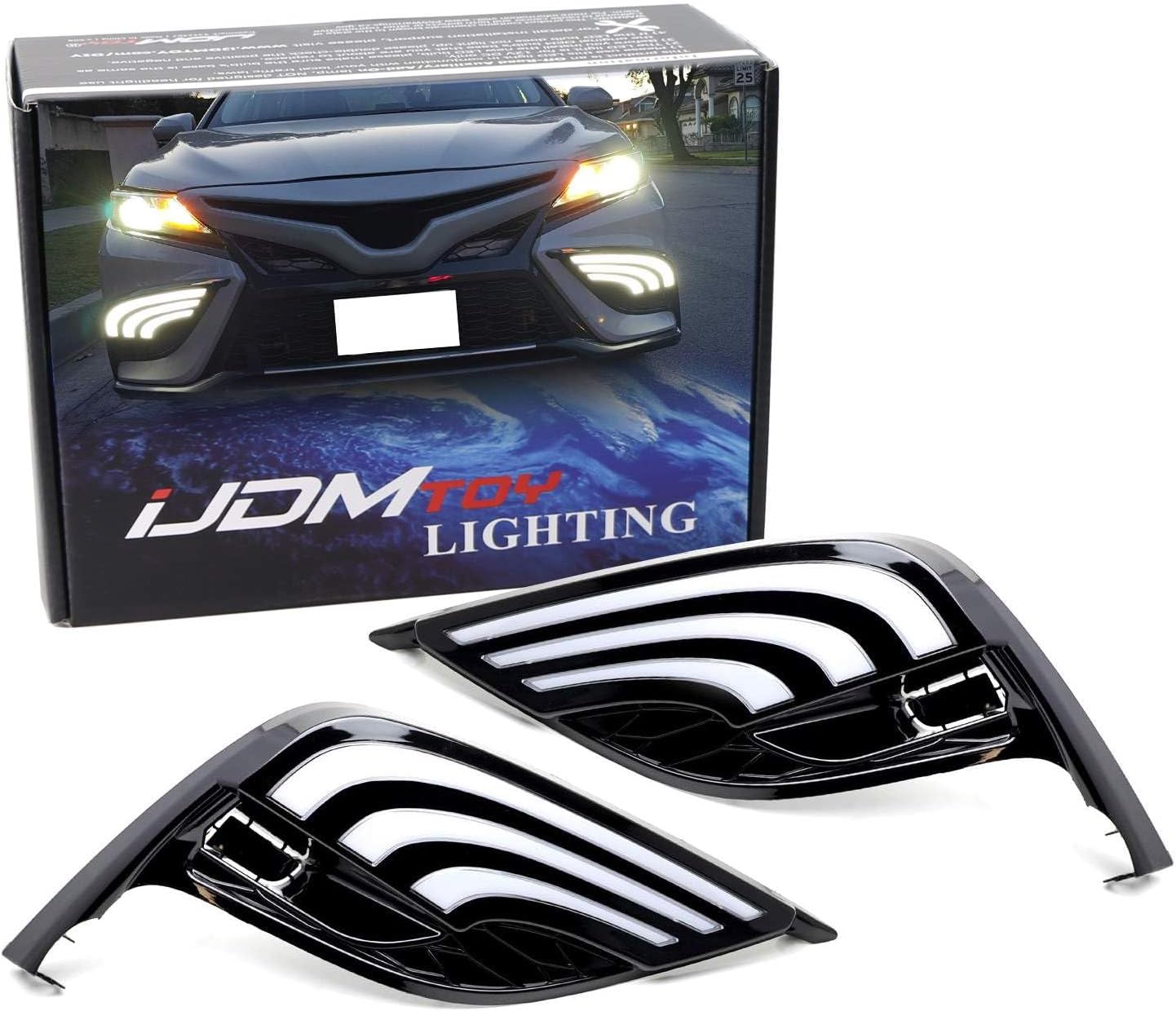 iJDMTOY JDM/TRD Style Switchback LED Daytime Running Light Fog Bezels Compatible With Toyota 2021-up Camry SE XSE Trims, White/Amber DRLs w/Sequential Flash Turn Signal Feature