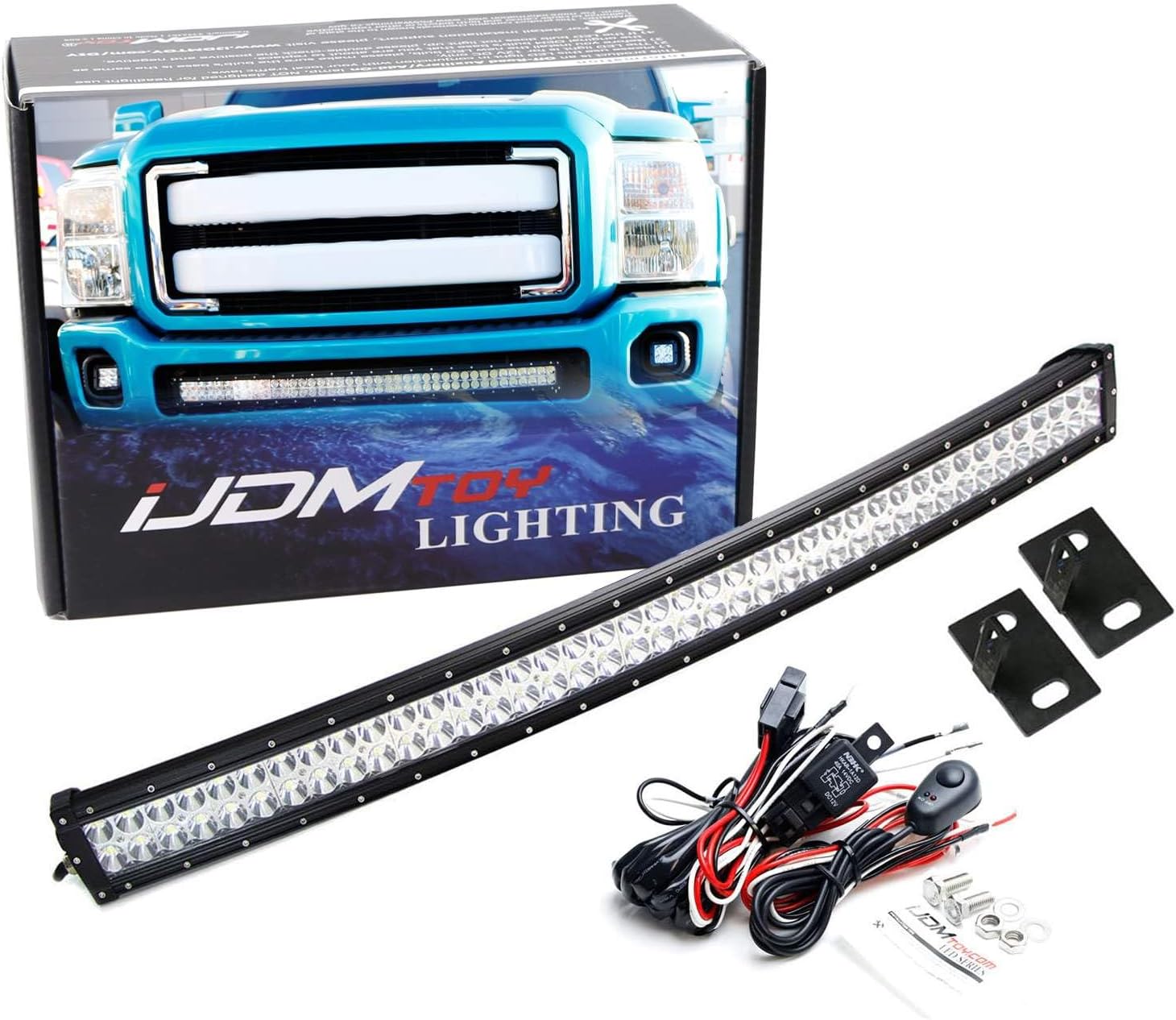 iJDMTOY Lower Grille Mount 40-Inch LED Light Bar Compatible with 11-16 Ford F250 F350 Super Duty, Includes (1) 240W Curved LED Lightbar, Lower Bumper Opening Mount Brackets & On/Off Switch Wiring Kit