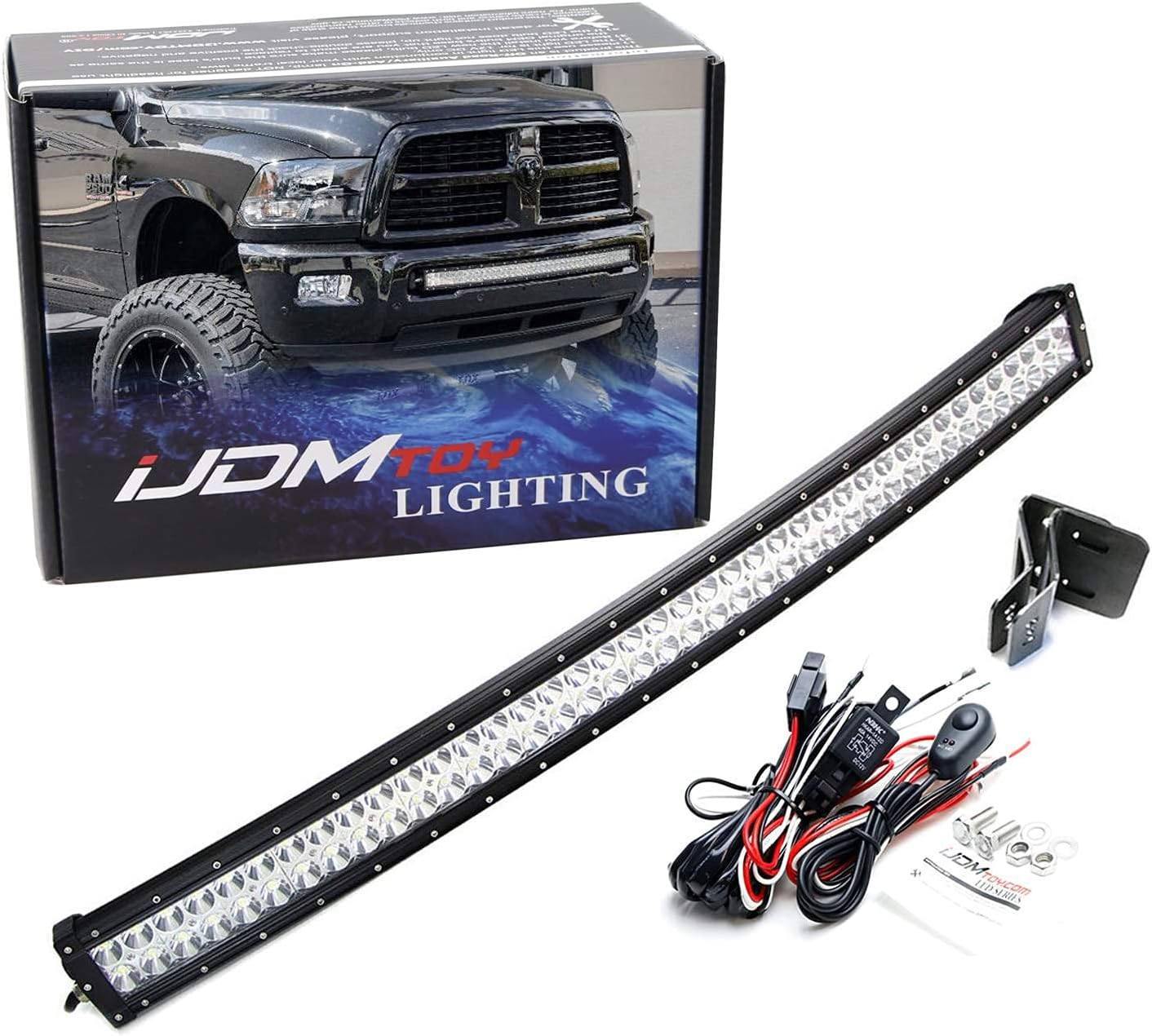 iJDMTOY Lower Grille Mount 40-Inch LED Light Bar Compatible with 2010-18 Dodge RAM 2500 3500, Includes (1) 240W Curved LED Lightbar, Lower Bumper Opening Mounting Brackets & On/Off Switch Wiring Kit