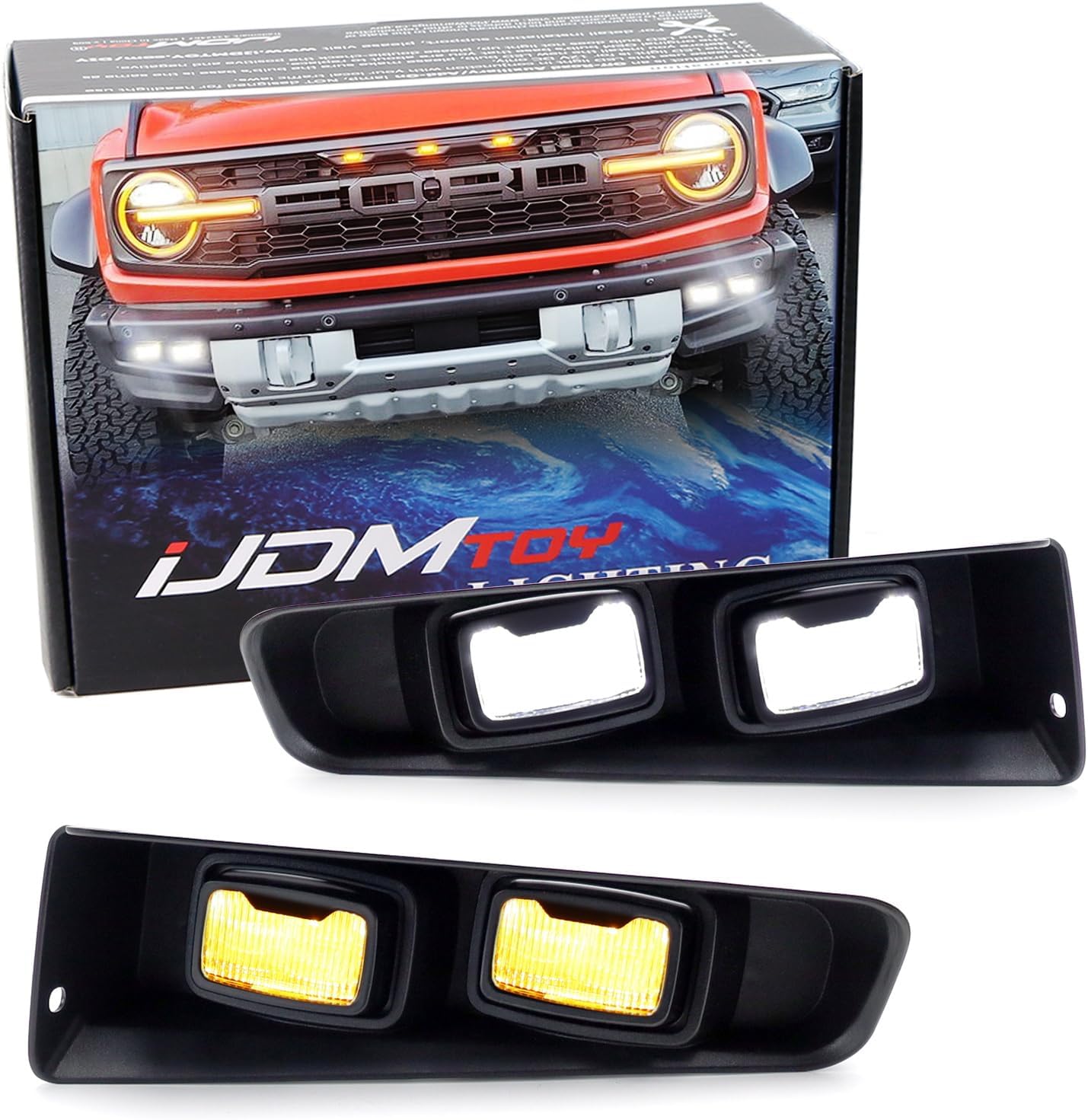 iJDMTOY Raptor_Style Dual-Pod White/Amber Switchback LED Daytime Running Light Kit w/Remote Control Option, Compatible with Ford 2021-up Bronco w/Modular Bumper ONLY