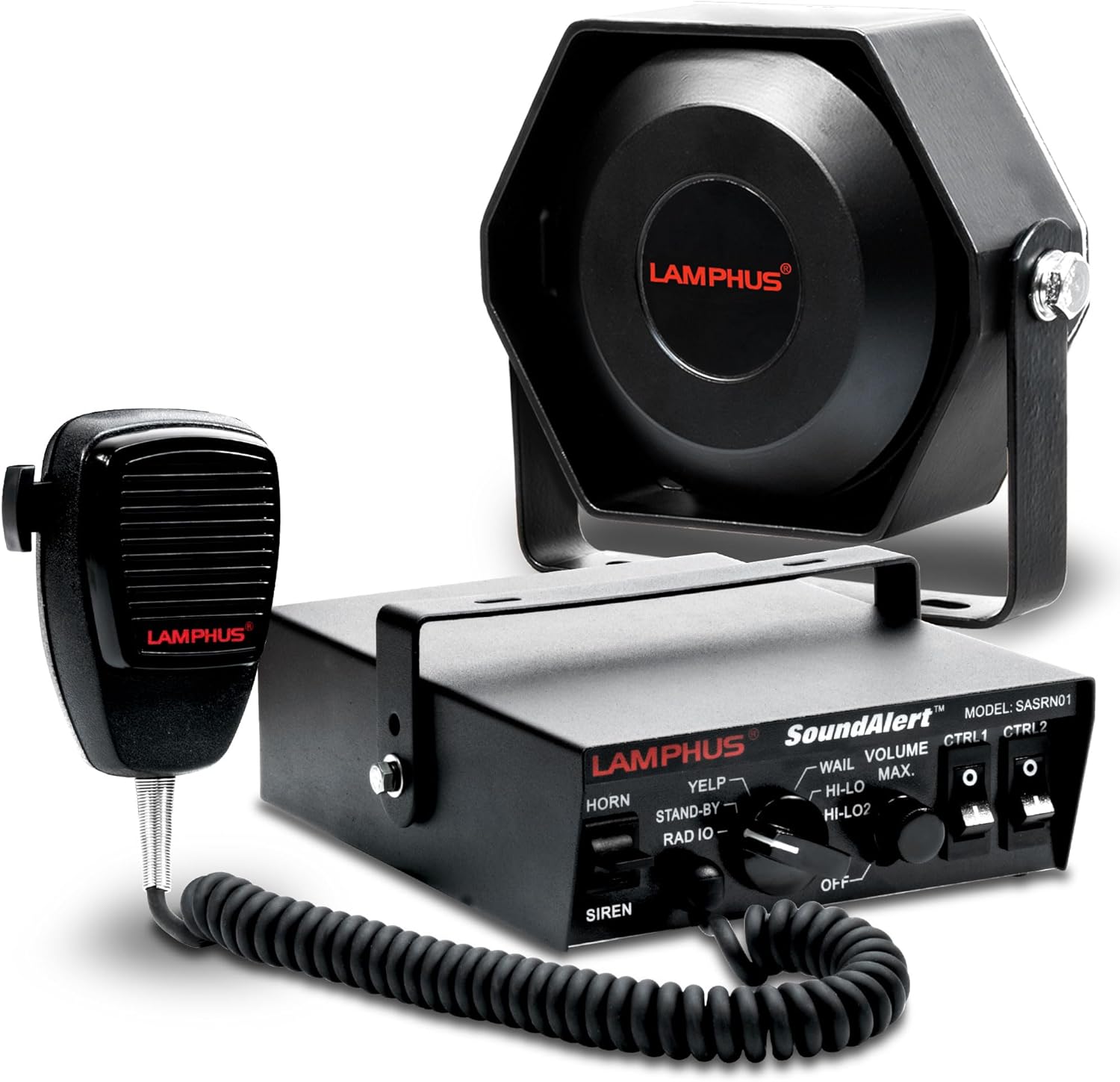 LAMPHUS SoundAlert 12V 100W Police Siren PA System Kit [Slim Speaker] [118-124dB] [Handheld Microphone] [Hands-Free] Warning Emergency Siren for Vehicles Tow Truck UTV ATV Van Car POV RV