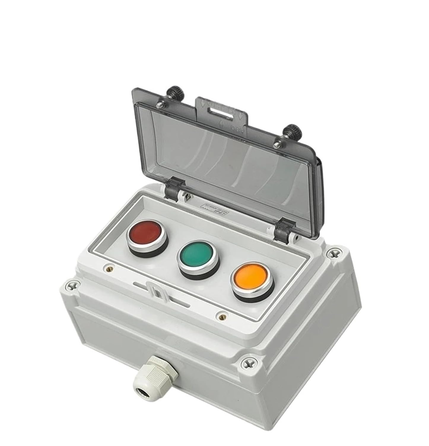 AC220V Push Button Control Switch Box Emergency Stop Start Indicator Light self-Recovery Switch Junction Box(Black)