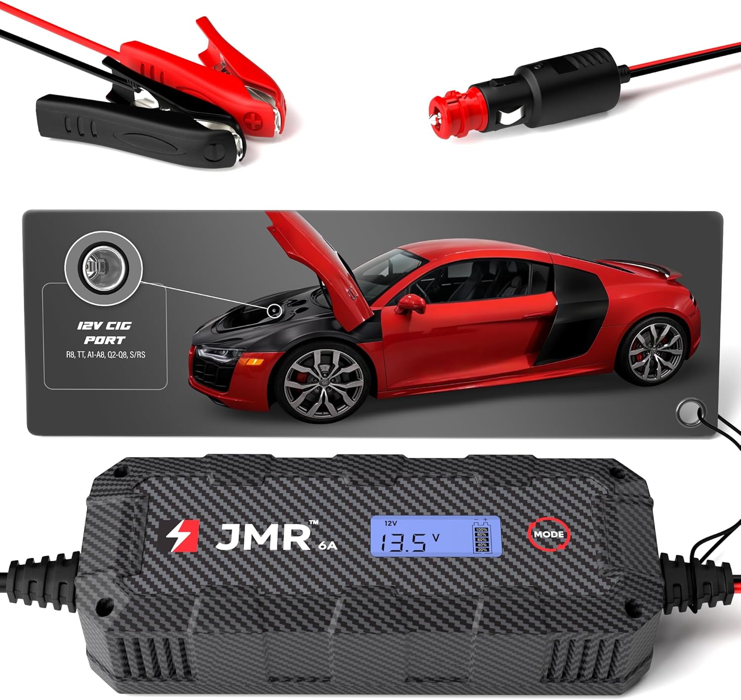 JMR Battery Charger for Audi R8 S8 RS TT Q7 SQ8 A5 All Models Trickle Charger Conditioner Maintainer (No Lithium Mode)
