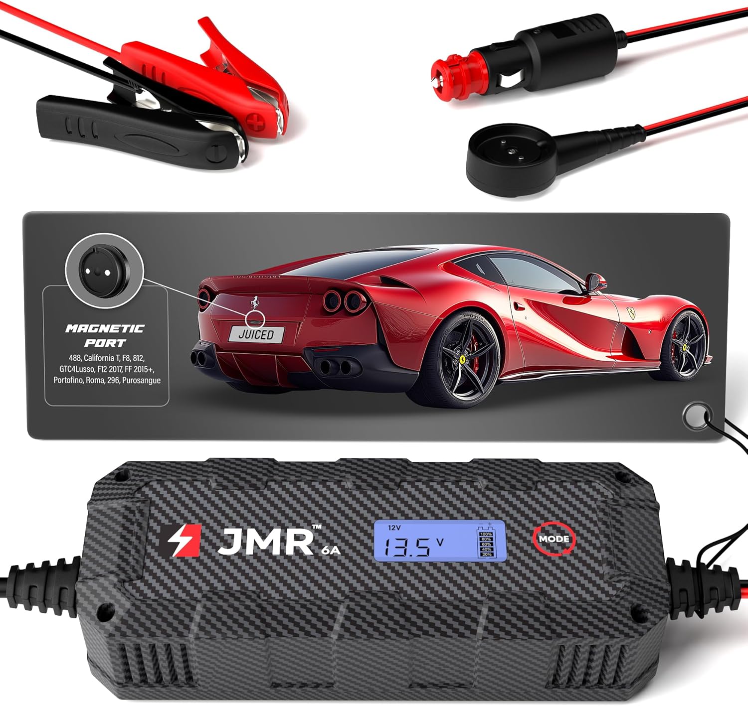 JMR Battery Charger for Ferrari 488 F8 California T Portofino 812 Roma GTC4Lusso FF F12 Purosangue 12Cilindri Trickle Charger Conditioner Maintainer (Magnetic Port, No Lithium Mode)