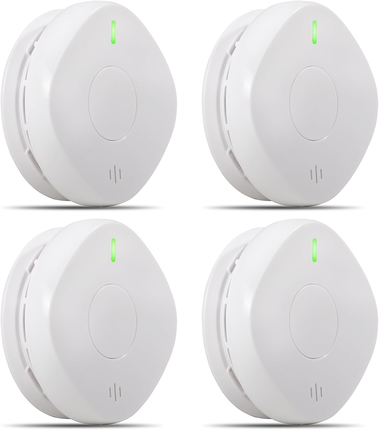 Smoke Detector Carbon Monoxide Detector Combo 10 Year Battery, 2 in 1 Smoke Detector, LED Warning Light Indicators, White, 4 Pack