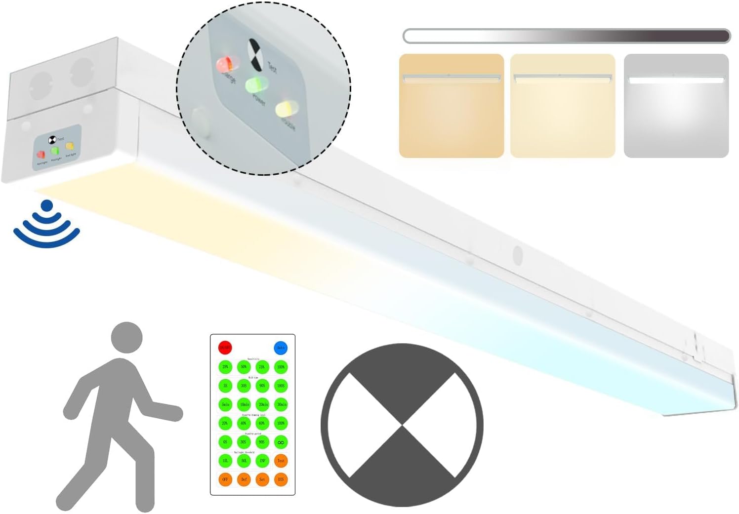 4FT LED Wraparound Emergency Stairwell Light with Tri-Level Motion Sensor, Battery Backup, Remote, IP20, 20W(2500lm)/40W(5000lm), 3 CCT, 100-277V, Dimmable, Wrap Shop Ceiling Light Fixture, FCC