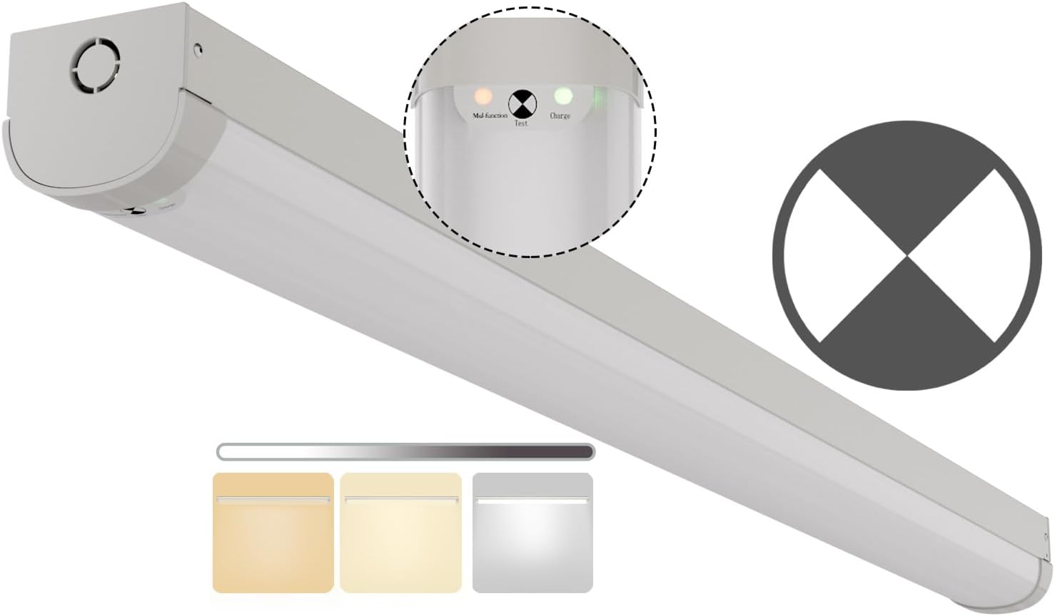 4FT LED Linear Strip Emergency Stairwell Light, 2 Watt/3 CCT Selectable, 20W/40W, 2500lm/5000lm, Battery Backup, 30K/40K/50K, IP20, 0-10V Dimmable 4 Foot Commercial LED Shop Ceiling Light Fixture, ETL