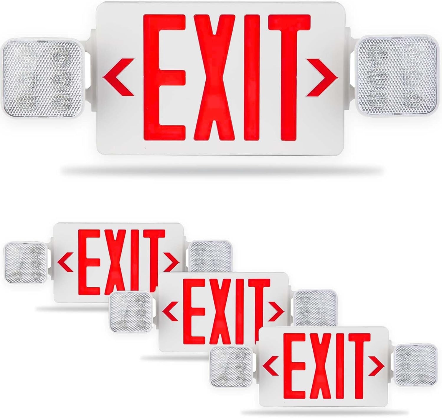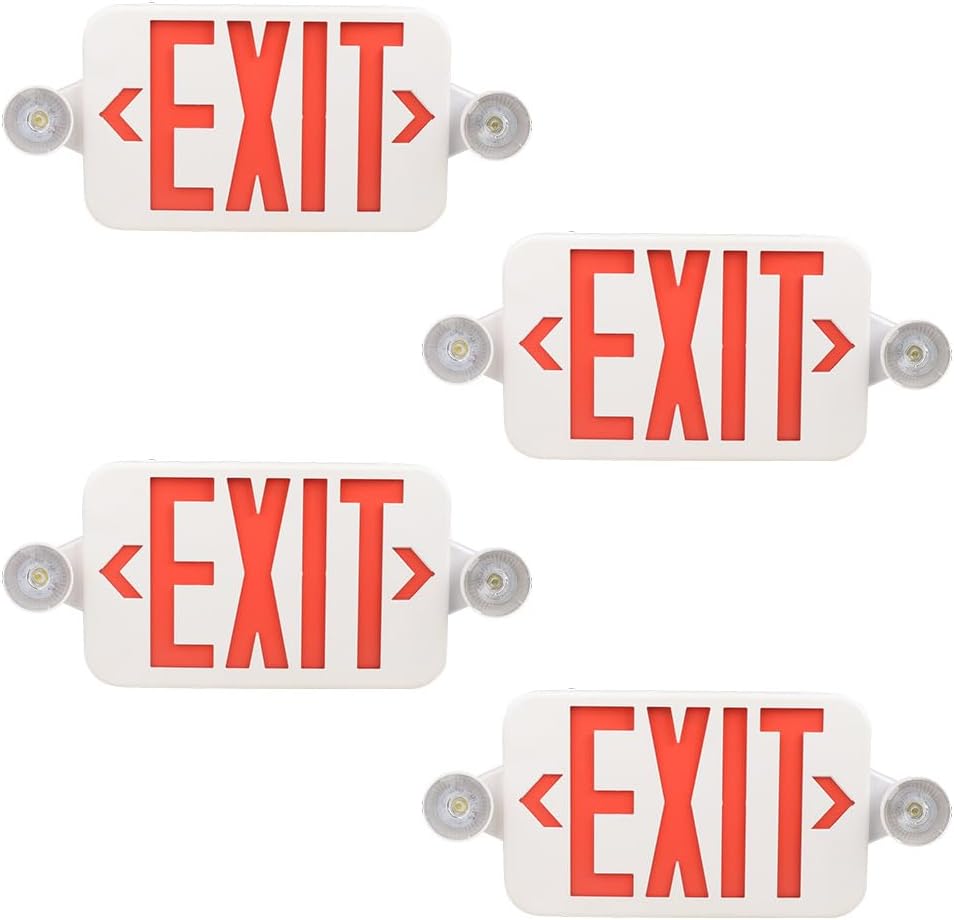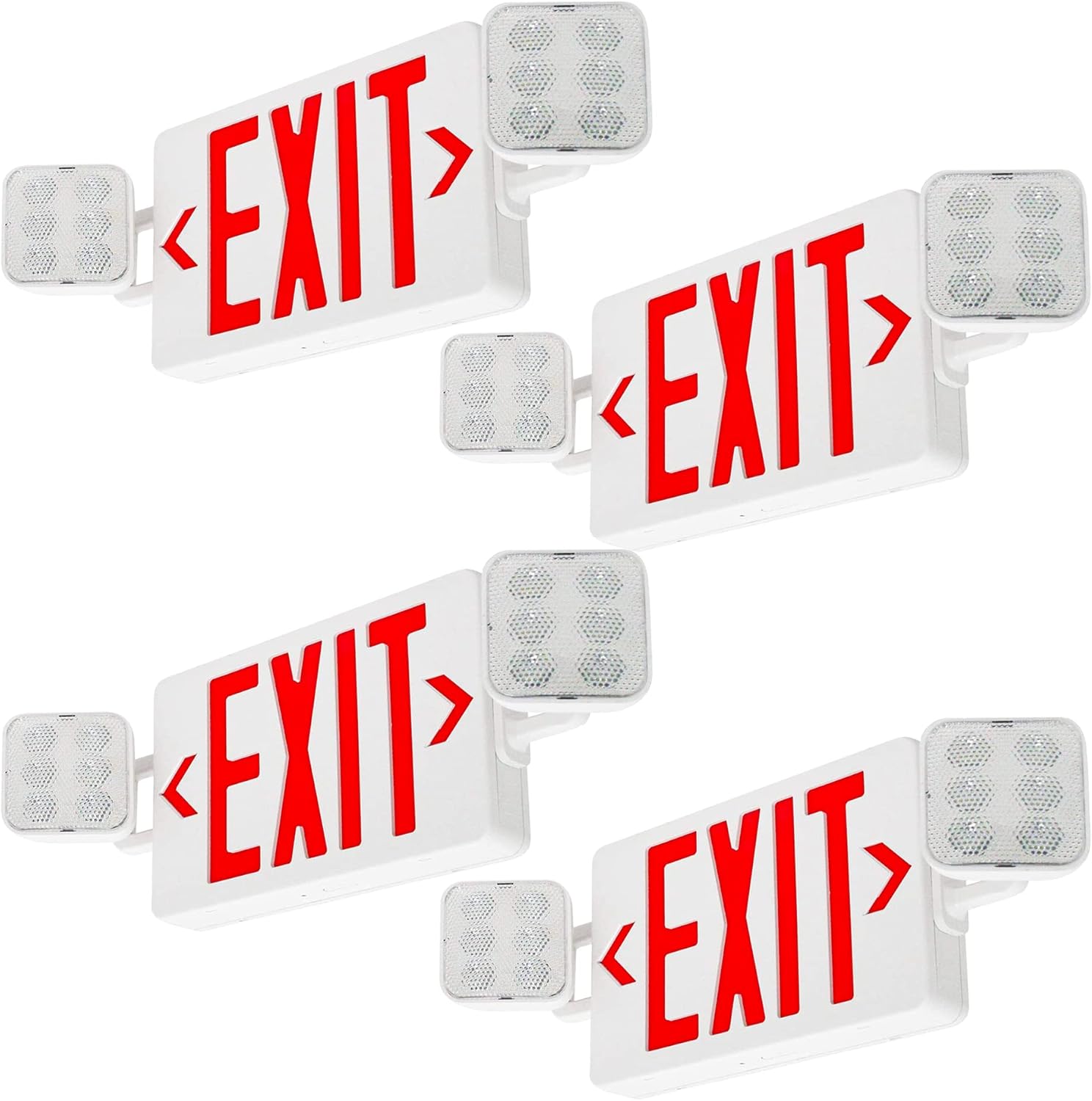 LED Combo Exit Sign Emergency Light, Commercial Emergency Exit Lights with Battery Backup, Double Sided and Adjustable Two LED Head, Fire Resistant UL 94V-0, AC 120/277V (4 Pack)