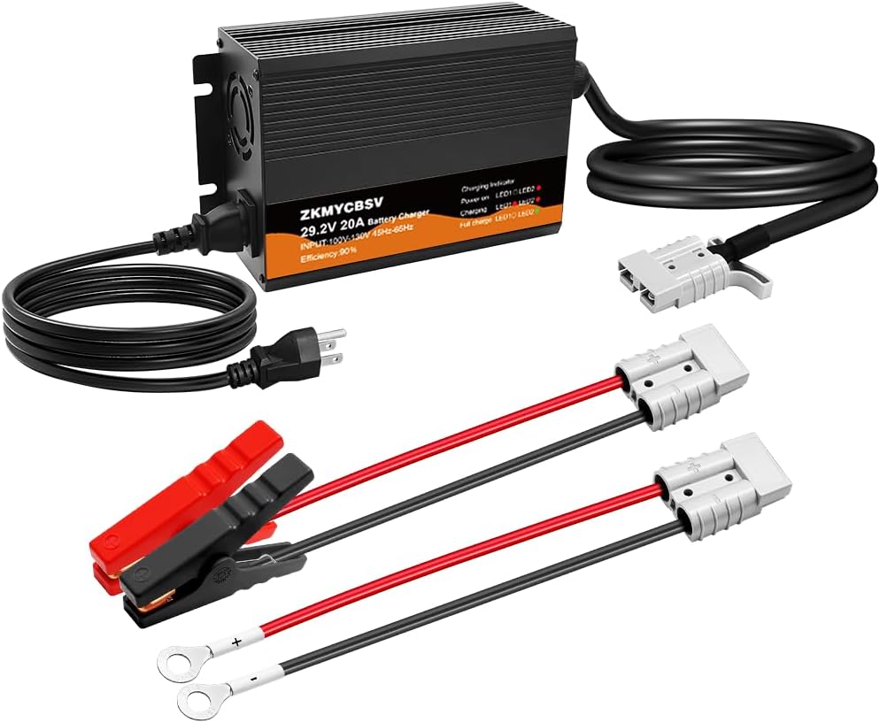 29.2V 20A LiFePO4 Battery Charger, 24 Volt LiFePO4 Battery Charger with LED Indicators, Bulit-in Cooling Fan, Multi Safety Protections, Support Fast Charging, Suitable for Trailer RV SUV Boats