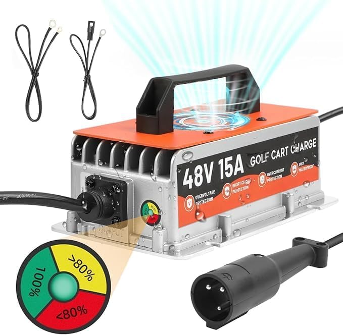 Club Car Charger 48 Volt, 900W 15AMP 48v Club Car Battery Charger, IP67 Waterproof, Fully Automatic Golf Cart Charger 48 Volt Club Car Precedent & DS Lead Acid Battery Charger with 16Ft Cable
