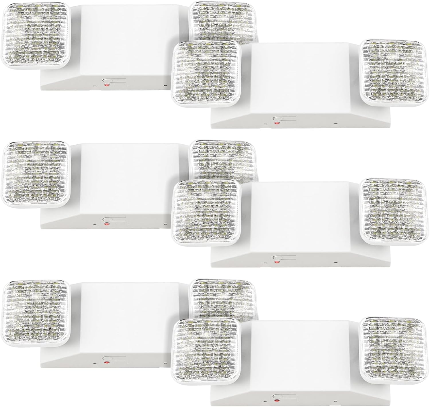 LED Emergency Lights with Battery Backup, Two LED Head Adjustable Commercial Emergency Lights, AC 120/277V, UL 924 Certified, Hardwired Emergency Exit Lighting Fixture for Business(6-Pack)