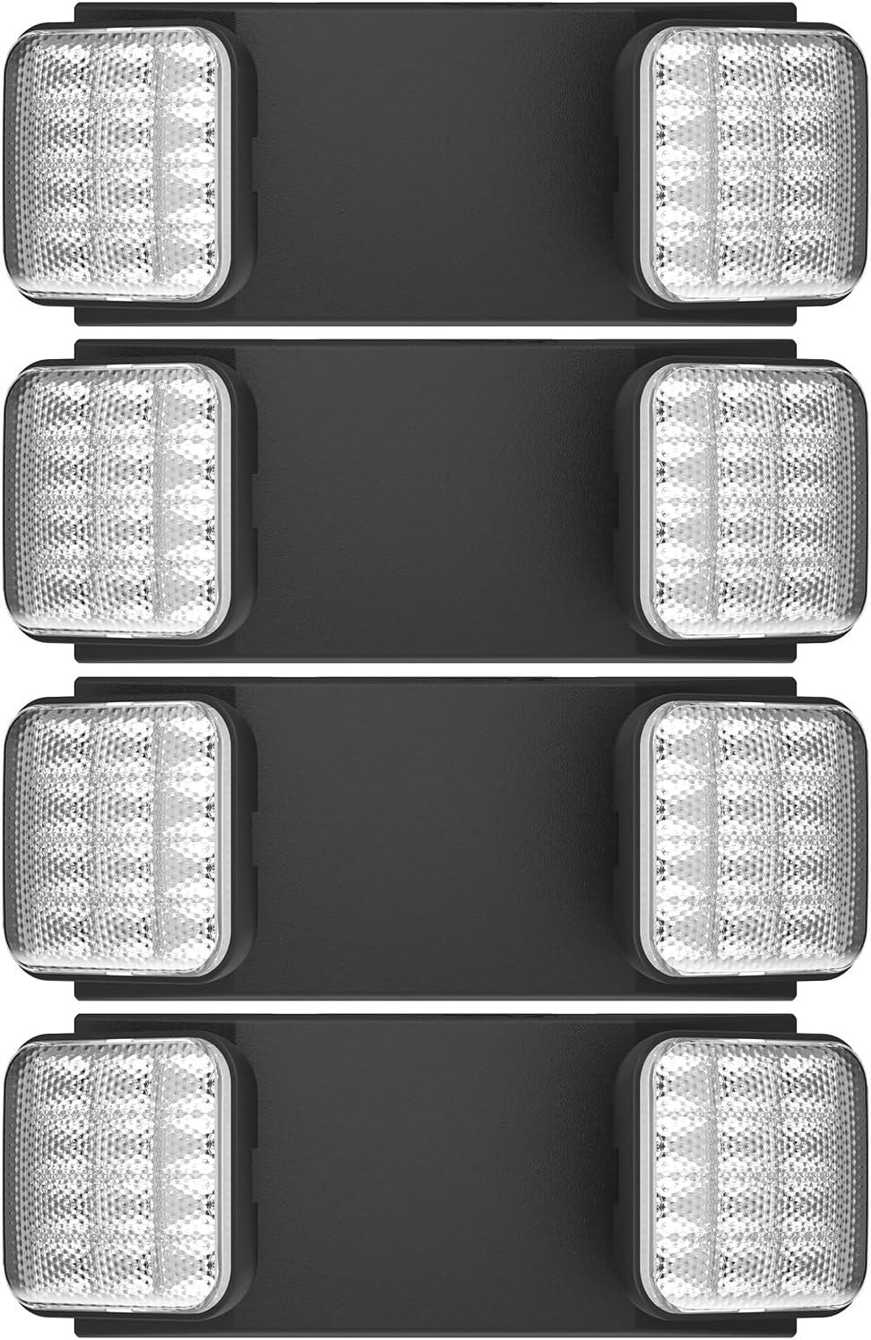 4 Packs Blacks Emergency Lights with Backup Battery,Two Head Adjustable Fire Commercial Emergency Light Fixture-UL Listed-120/277VAC-Led Emergency Exit Lights Fixtures for Business.