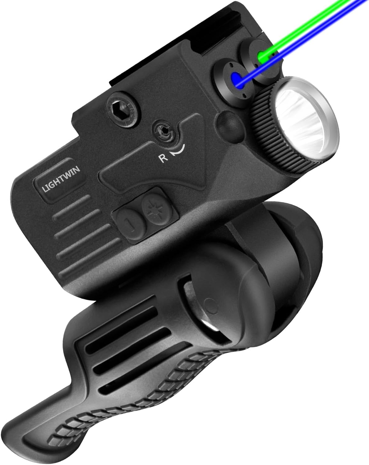 1200LM Rechargeable Flashlight with Green & Blue Laser, 5 Light Modes & Strobe, 3 in 1 Laser Flashlight Combo with Strobe Sight, LED Power Indicator for Outdoor, Emergency, Camping