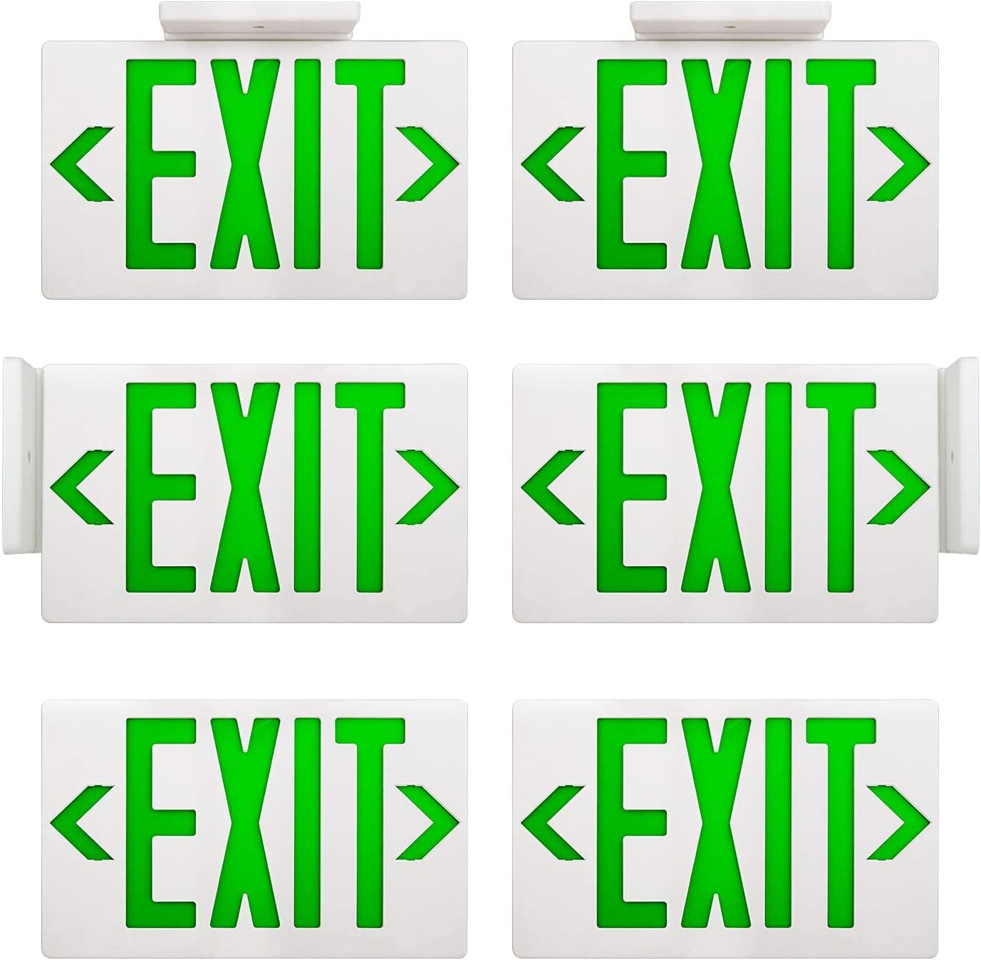 AKT LIGHTING Green LED Exit Sign Emergency Light with Battery Backup, Double Face Hardwired Green Letter Emergency Exit Lighting For, Restaurant, Commercial, Supermarket, UL-Listed, 120-277V, Pack of 6