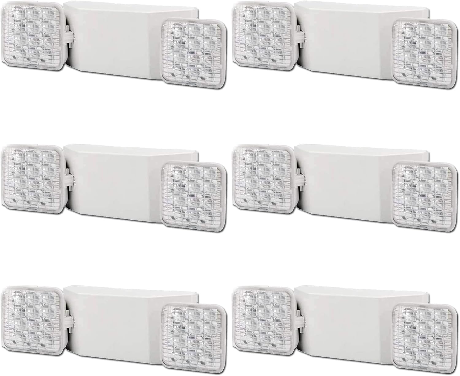 Commercial Emergency Lights, UL Certified Emergency Light with Backup Batteries, Adjustable 2 Head Emergency Light Fixture, White Emergency Exit Lighting, Hardwired, Wall Mounted (6 Pack)