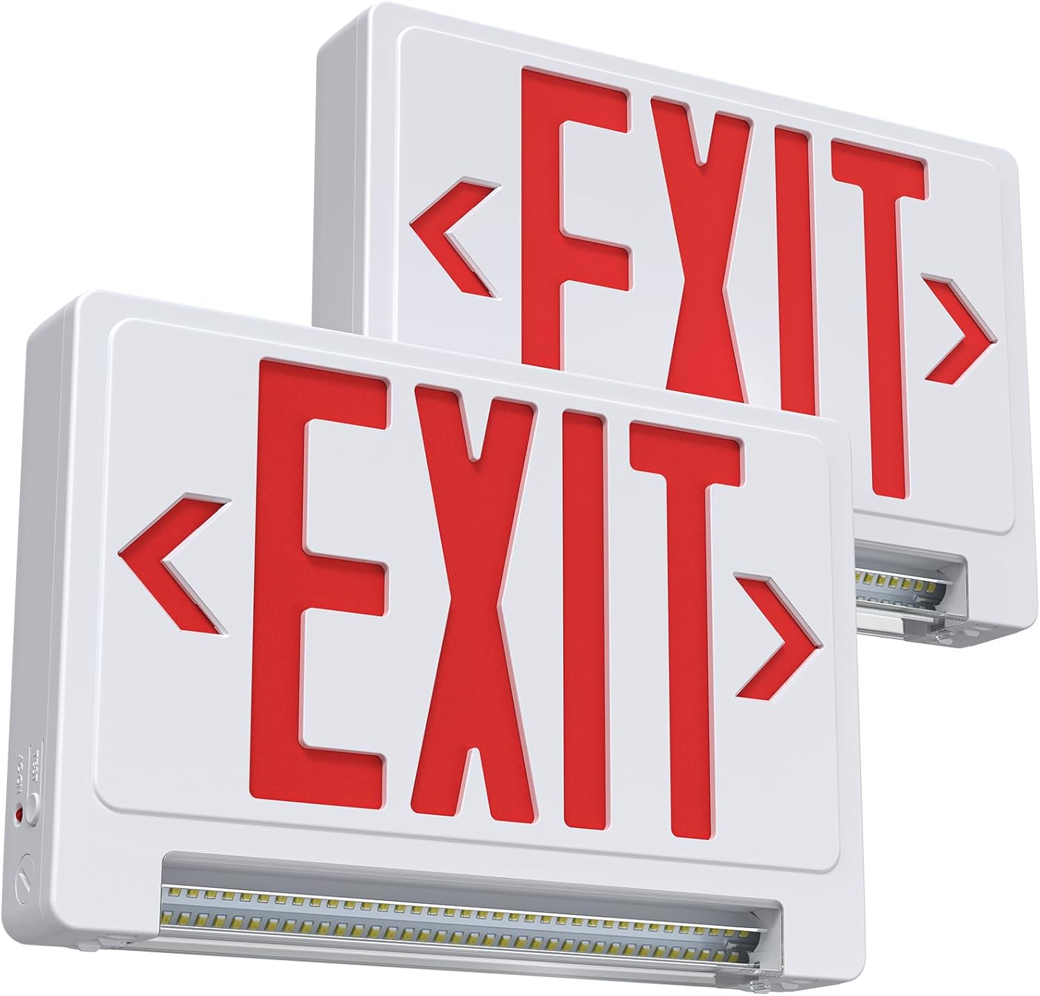 Exit Sign with Adjustable LED Pipe, Exit Signs with Emergency Lights Bar Combo, Compact Hardwired Exit Sign with Battery Backup,Red Led Emergency Exit Light for Business , 120V/277VAC,UL Listed,Top/Side/Wall Mount (2 Pack)