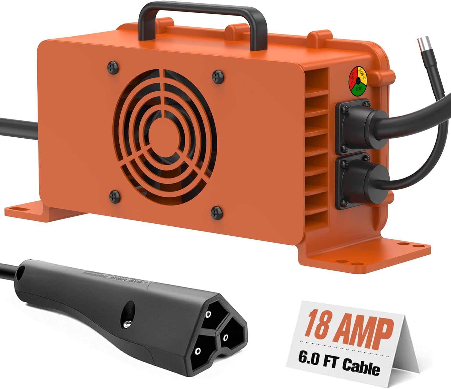 Upgrade 18 Amp 48 Volt Golf Carts Battery Charger for EZGO RXV & TXT Lead-Acid Battery Smart Trickle Charger with 3-pin Triangular Plug IP67 Waterproof