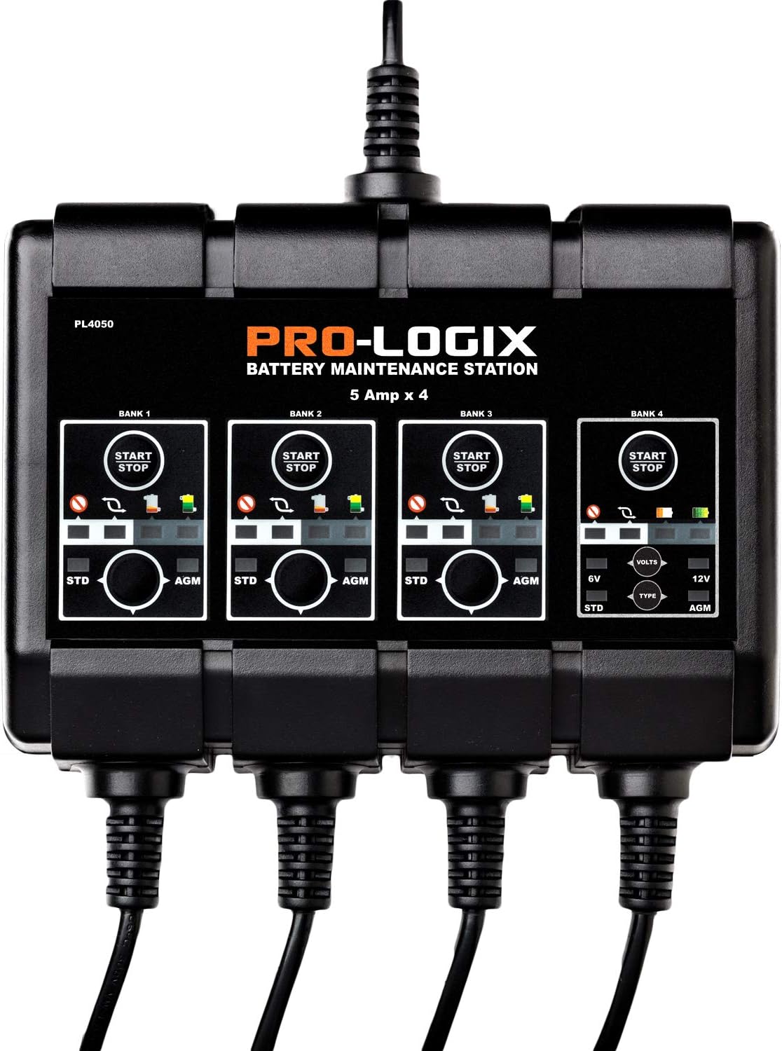 Clore Automotive PL4050, Pro-Logix 4-Bank, 20-Amp (5-Amp Per Bank) Fully-Automatic Smart Charger, 6V and 12V Battery Charger, Battery Maintainer, and Battery Desulfator with Temperature Compensation