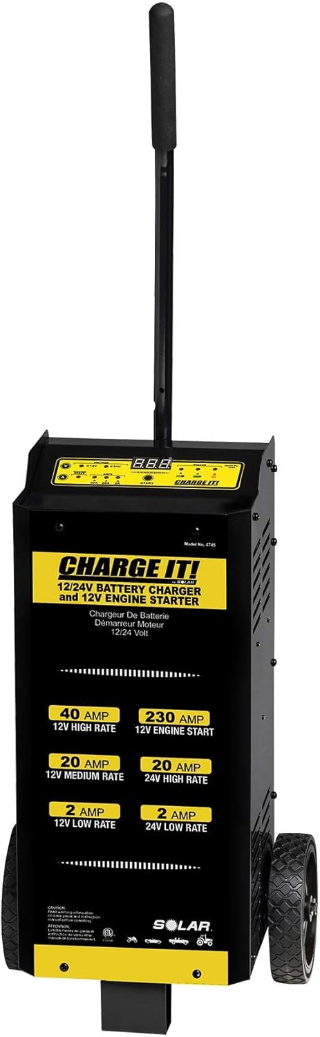 Clore Automotive CHARGE IT! 12/24V WHEELED BATTERY CHARGER with ENGINE START, black/yellow (4745)