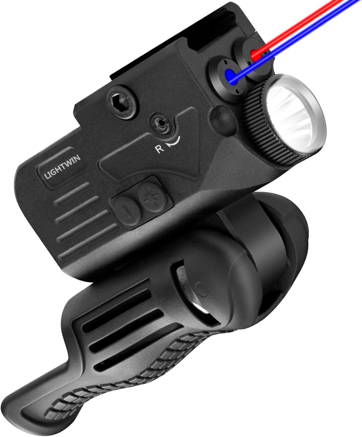 1200LM Rechargeable Flashlight with Red & Blue Laser, 5 Light Modes & Strobe, 3 in 1 Laser Flashlight Combo with Strobe Sight, LED Power Indicator for Outdoor, Emergency, Camping