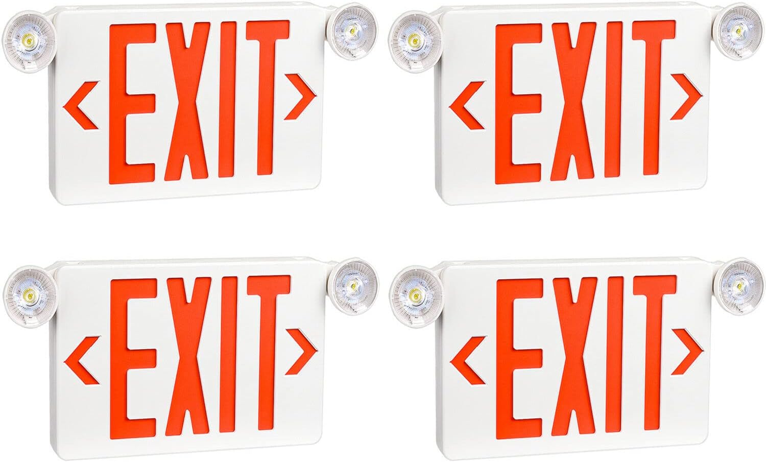 OSTEK 4 Pack Red LED Exit Sign with Emergency Lights, Two Adjustable Head Emergency Exit Lights with Battery Backup, Dual LED Lamp ABS Fire Resistance UL-Listed 120-277V