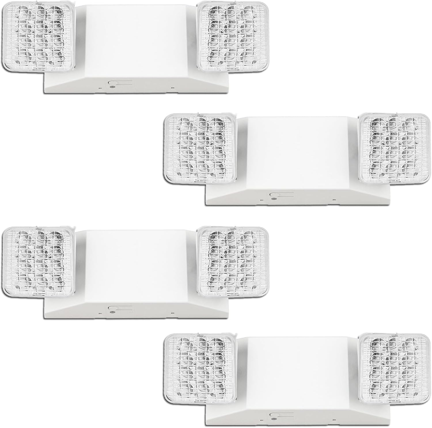 LED Emergency Lights with Battery Backup, Two Head Adjustable Commercial Emergency Lights Fixture, Emergency Light for Home Power Failure,Wall Mount, Hard Wired, 120-277V, Fire Resistant 4 Pack