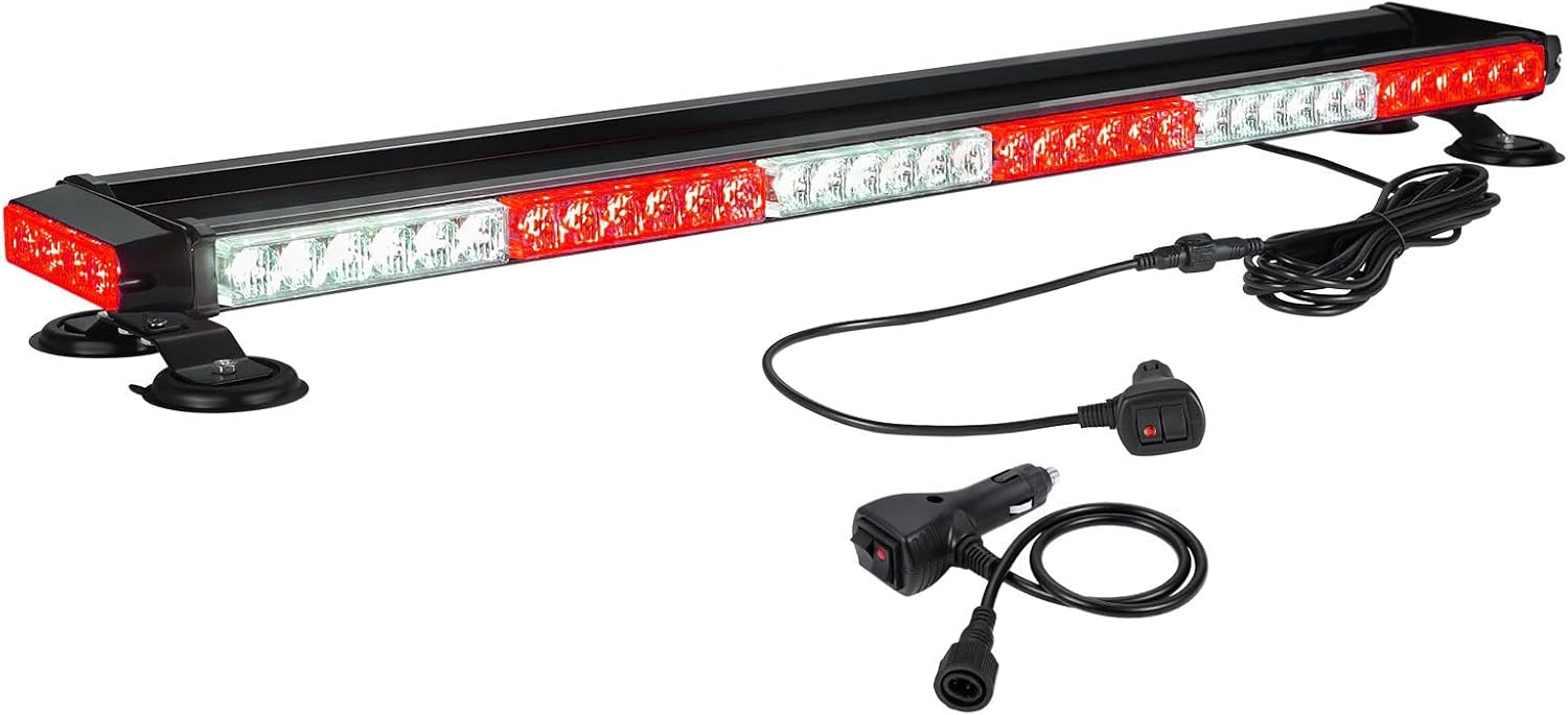 WOWTOU Roof Top Flashing Strong Magnetic 80 LED Red White Emergency Strobe Light Bar for Firefighter First Responder Vehicles Fire Trucks, Double Side Safety Warning Beacon Lights