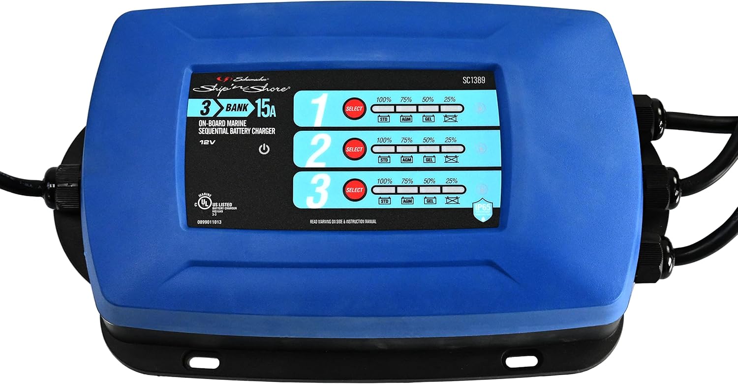 Schumacher-SC1389 Fully Automatic Direct-Mount 3-Battery Charger and Maintainer - 15 Amp, 12V - for Marine Batteries