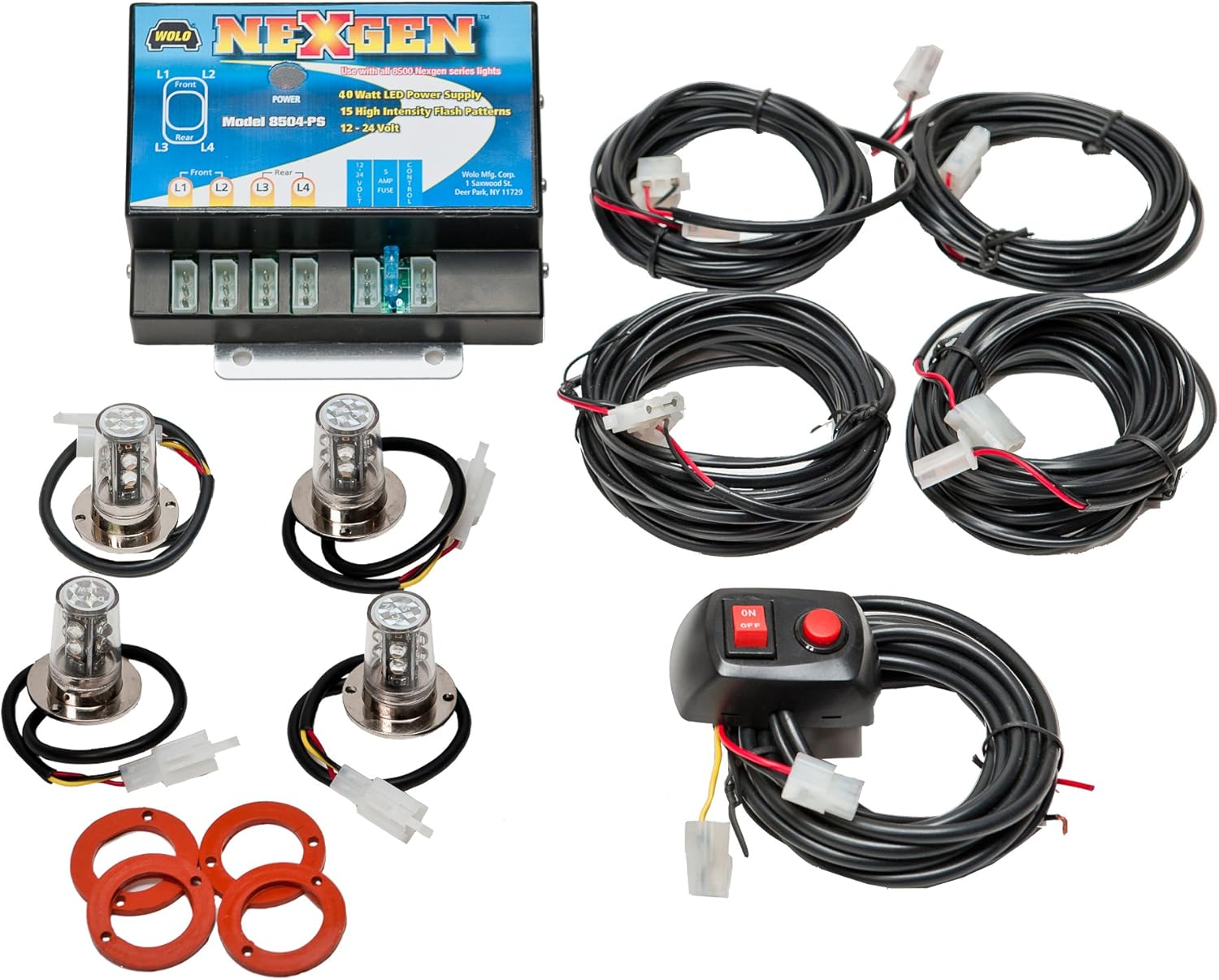 Wolo (8504-10CCCC) NexGen 40 Watt Power Supply Gen 3 LED Emergency Warning Four Head Kit - 4 Clear LED Heads