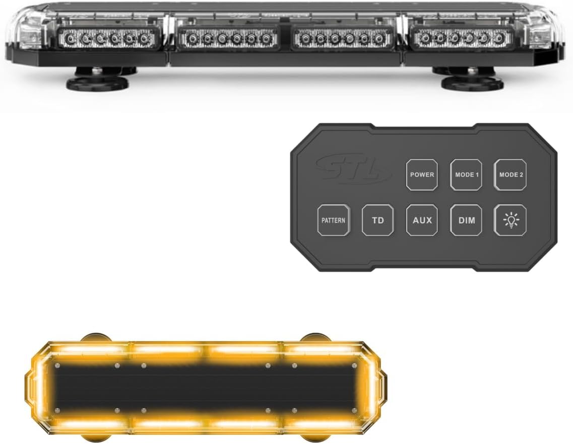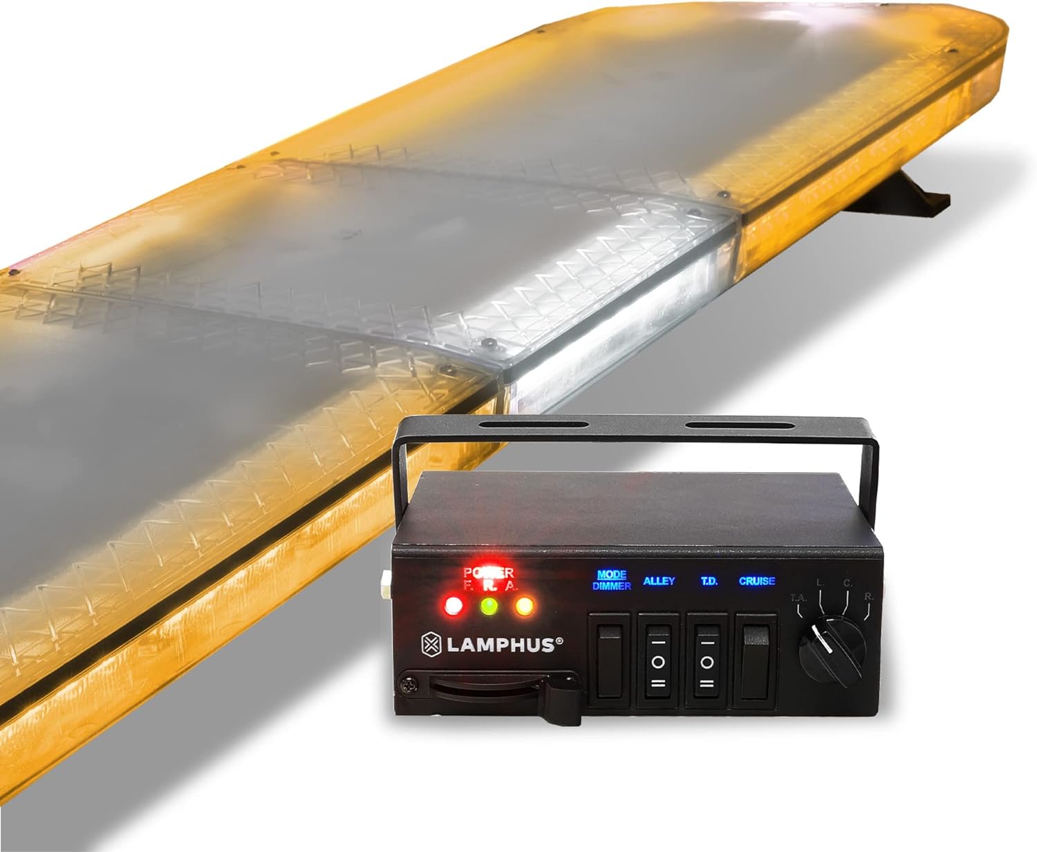 LAMPHUS SolarBlast SBFB98 47" 98W AMBER LED Emergency Full-Size Light Bar [SAE J595 Class III] [58 Flash Mode] [Controller Box] Yellow Flashing Rooftop Strobe Warning Light Bar For Tow Trucks