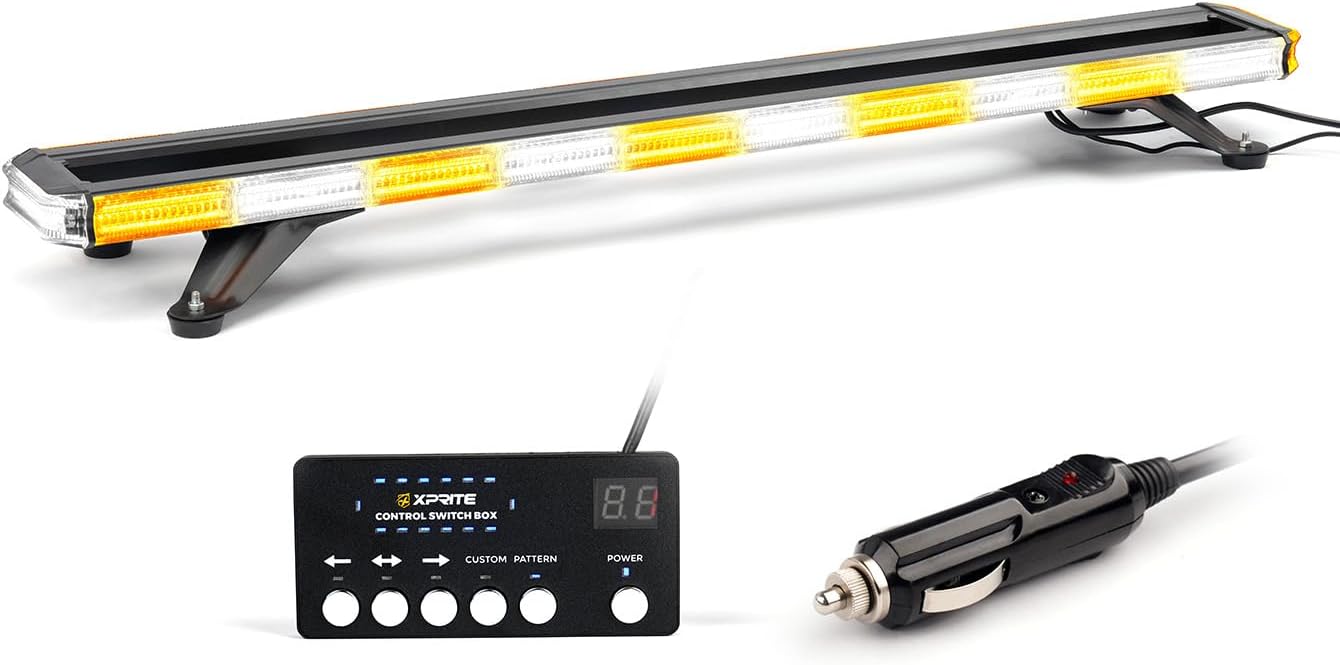 Xprite 42 inch 330 LED Rooftop Emergency Strobe Light Bar Heavy-Duty Flashing Warning Lights w/Adjustable Mounting Brackets, for Construction Vehicles Towing Work Trucks Plows Pickup - White Amber